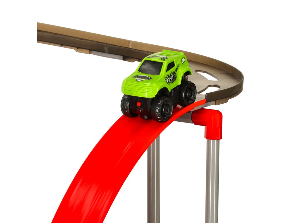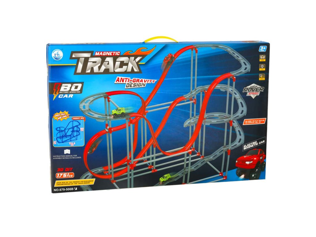 Velká antigravitační autodráha je unikátní hračka, která dětem umožňuje vytvořit dlouhou dráhu, po které se může auto pohybovat i vzhůru nohama. Sada obsahuje 175 dílků, takže si děti samy postaví dráhu o rozměrech 130 x 56 x 94,5 cm. Zelené autíčko, napájené dvěma bateriemi AAA (nejsou součástí balení), jezdí po dráze samo a překonává zatáčky a strmé kopce. Hračka podporuje rozvoj pozorovacích schopností dětí, přesnosti pohybu a logického myšlení.