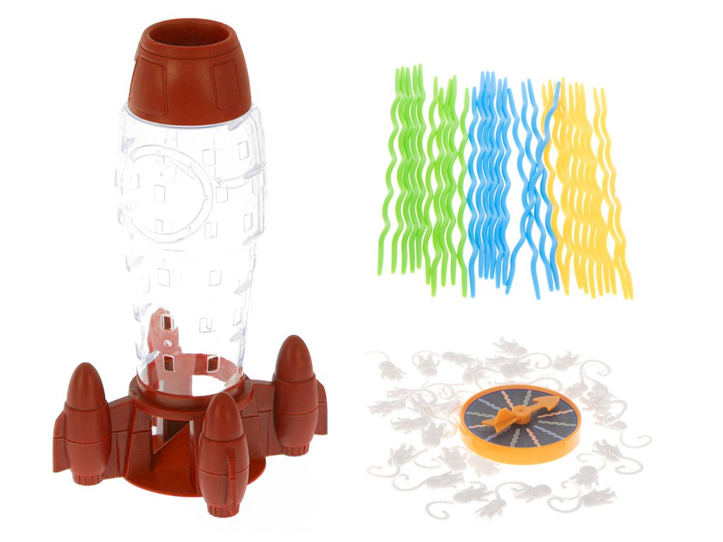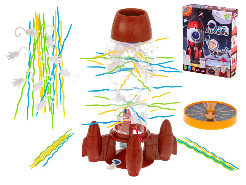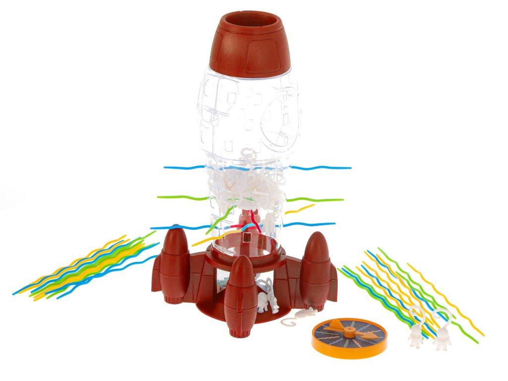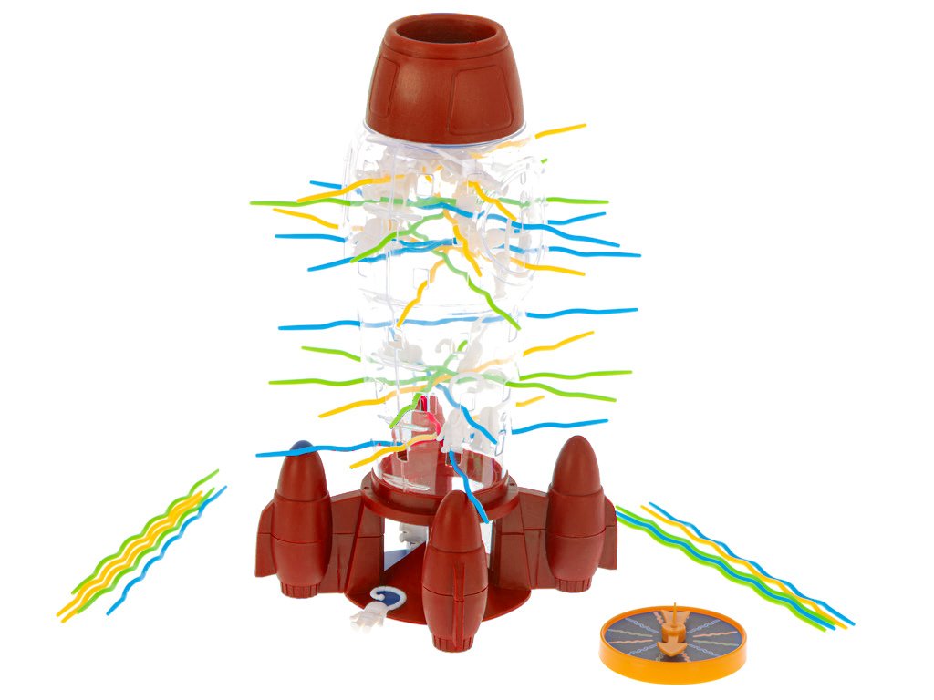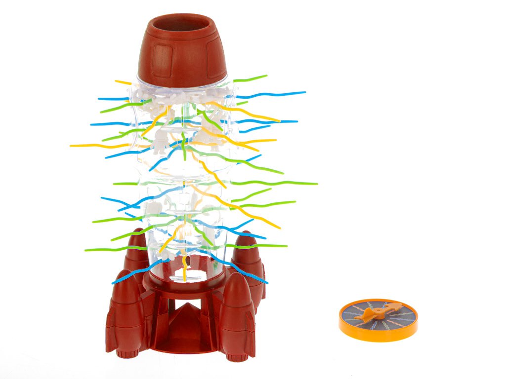 Klasická společenská hra v novém, vesmírném provedení! Cílem je vytahovat barevné tyčinky z rakety tak opatrně, aby astronauti zůstali uvnitř a nespadli na zem.