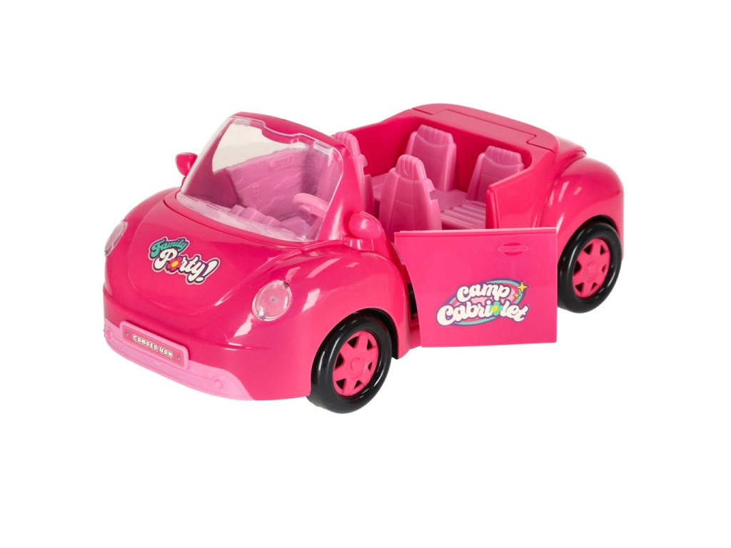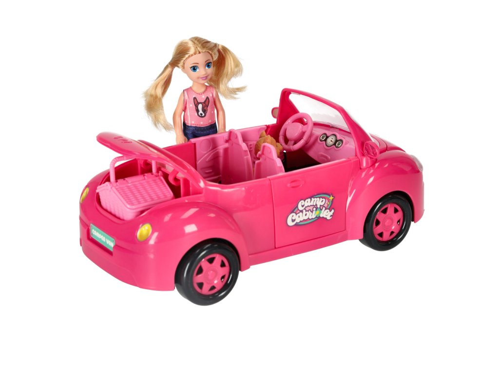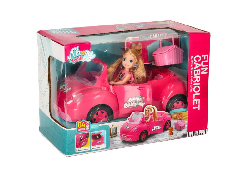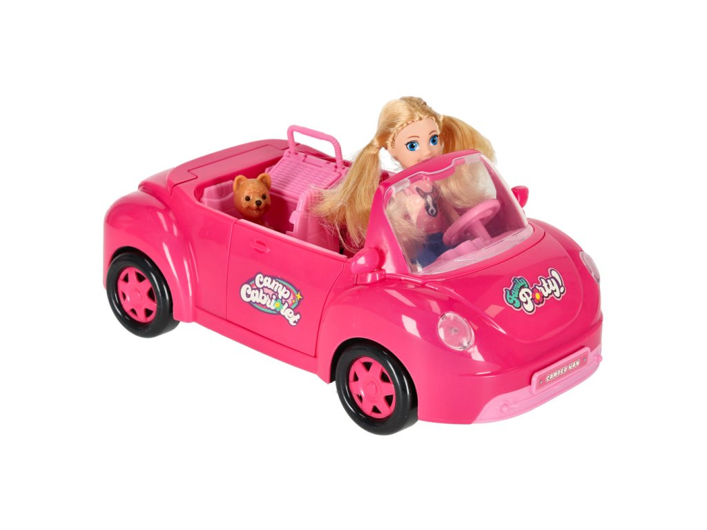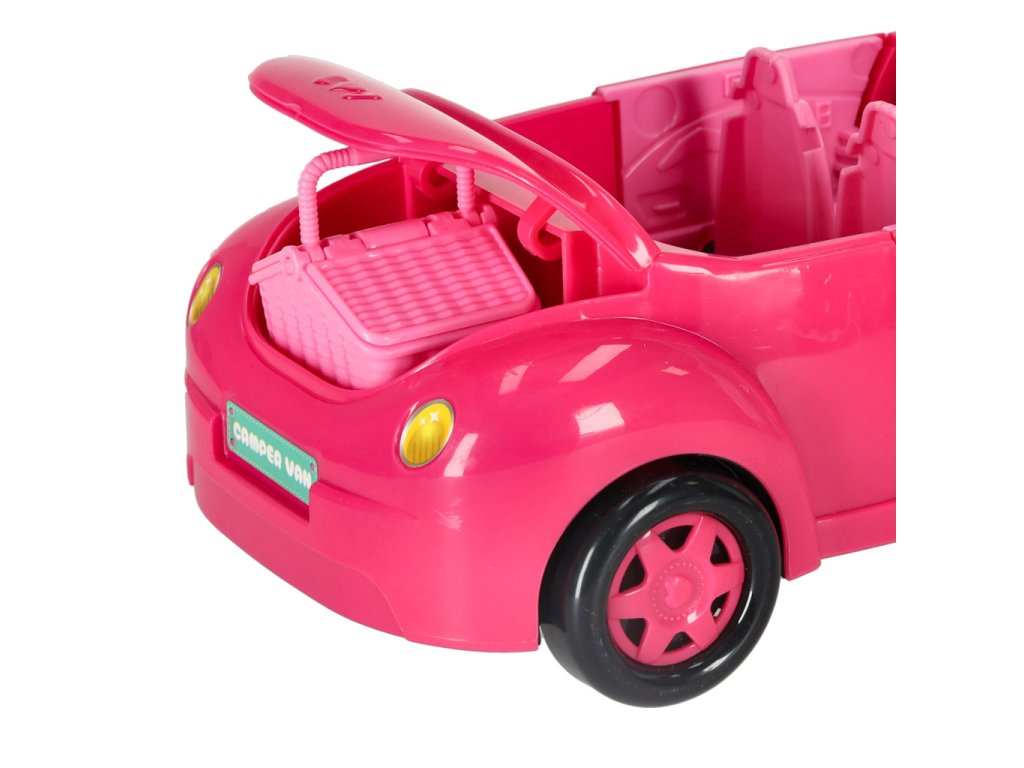 Růžové autíčko pro panenky dopřeje oblíbeným panenkám vašeho dítěte stylovou jízdu. Dveře a kufr auta se dají otevřít, což přispívá k větší zábavě. Sada obsahuje panenku, psa a piknikový koš. Hračka rozvíjí dětskou fantazii, kreativitu a drobnou motoriku.