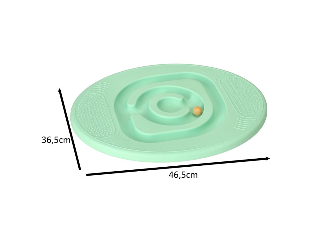 Balanční deska je vyrobena z odolného plastu v módní mátové barvě, což zaručuje dlouhou a bezpečnou hru. Je certifikována CE.