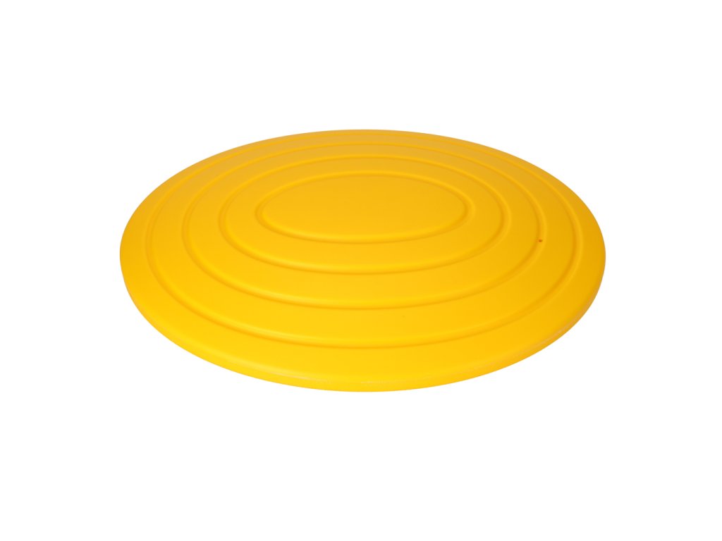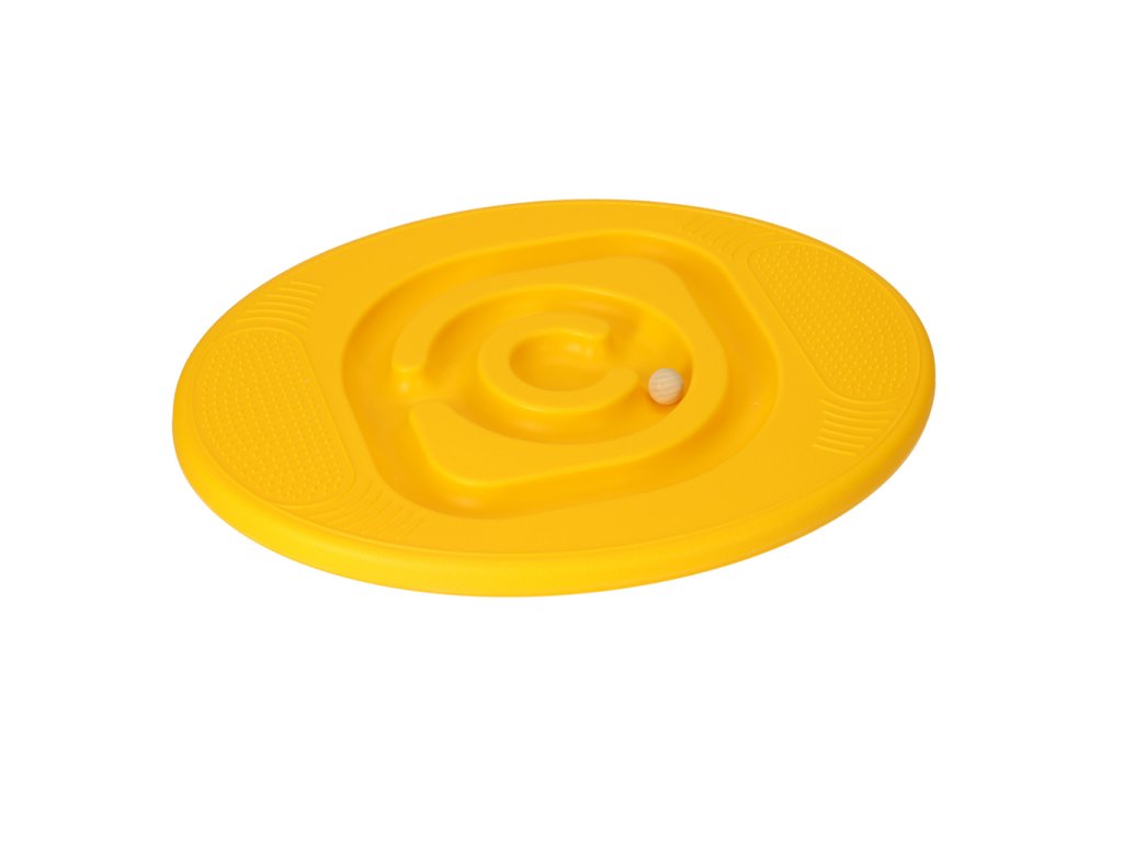 Žlutá balanční deska vyrobená z odolného plastu je zárukou kvality, která vydrží roky. Je certifikována CE.
