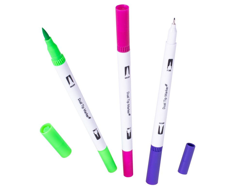 Sada 100 fixů různých barev a odstínů. Každý z fixů má dva hroty - na jedné straně je tenké pero o šířce 0,4 mm pro přesné obrysování a psaní a na druhé straně je fix o šířce 1 - 2 mm pro rychlé pokrytí velkých ploch.