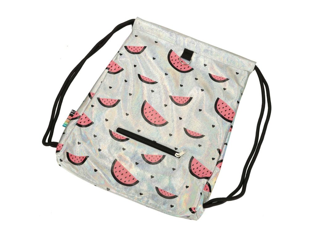 Batoh BAMBINO se stahovací šňůrkou - bílý perleťový, melouny