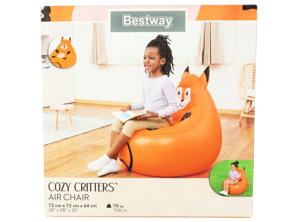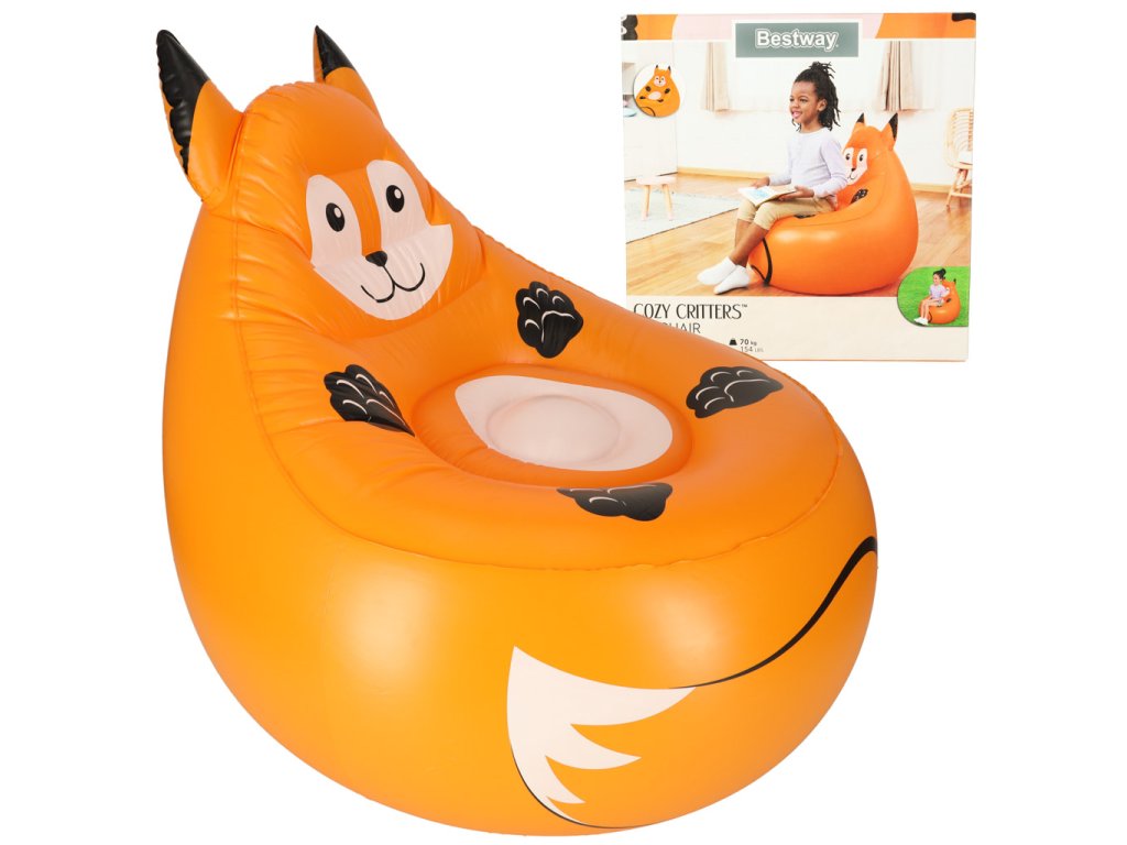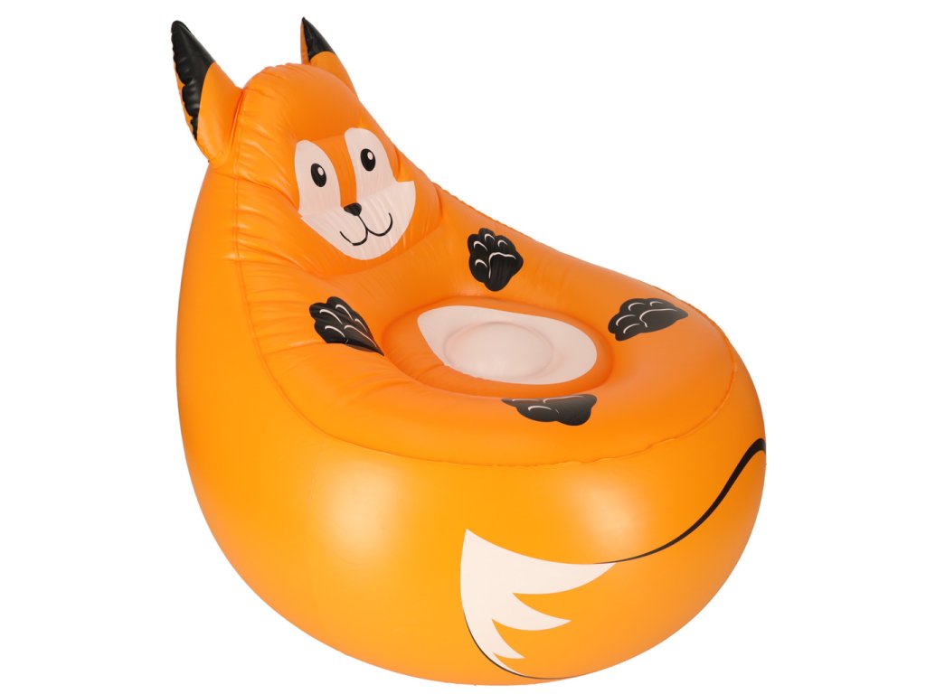 Nafukovací dětské křeslo ve tvaru rozkošné lišky je mimořádné křeslo, které jistě upoutá pozornost nejmenších. Jeho zajímavý design se dokonale hodí do každého dětského pokoje. Měkký povrch poskytuje pohodlné místo k relaxaci. Maximální nosnost křesla je 70 kilogramů, takže je nejen hezké, ale i pevné.