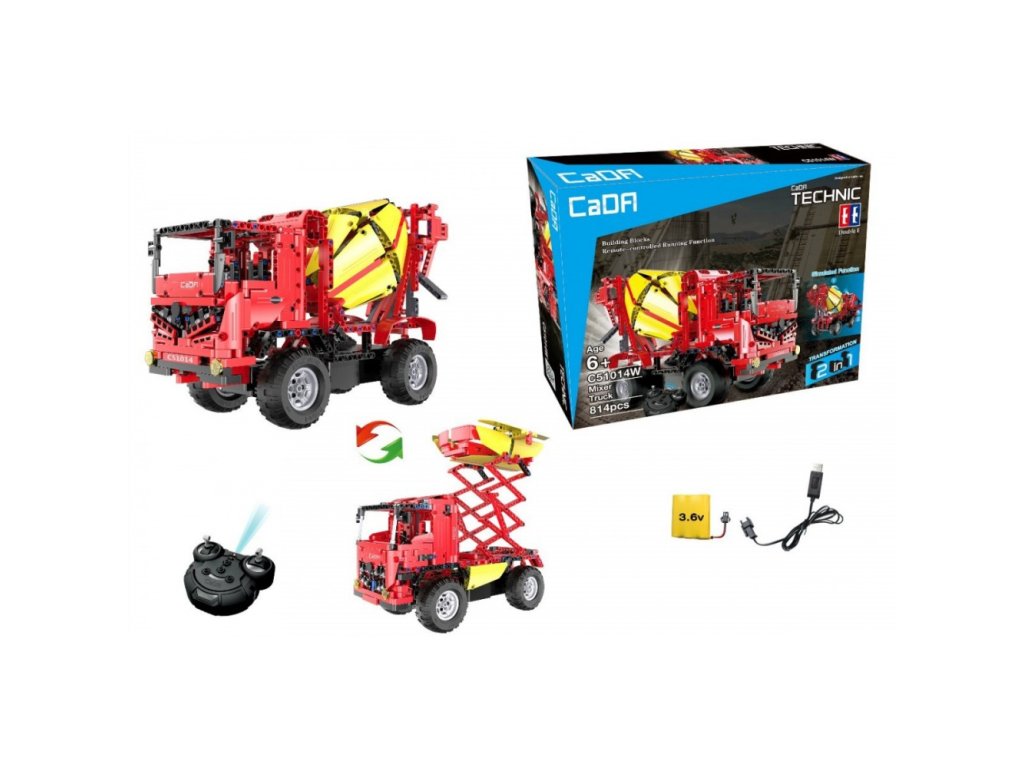 Stavebnice CaDa Míchačka nebo auto se zvedací plošinou se vyznačují velmi kvalitním zpracováním, nádherným designem a funkčními doplňujícími prvky. Jedinečná možnost sestavit si vlastní plně funkční model, který potěší i malé inženýry a stavitele a je zaručený zdroj zábavy s rychlostí až 7km/h. Lze otáčet s míchací nádobou a odklopit kabinu (u modelu auta s rampou lze zvednout rampu a odklopit kabinu). Stačí už jen sestavit.