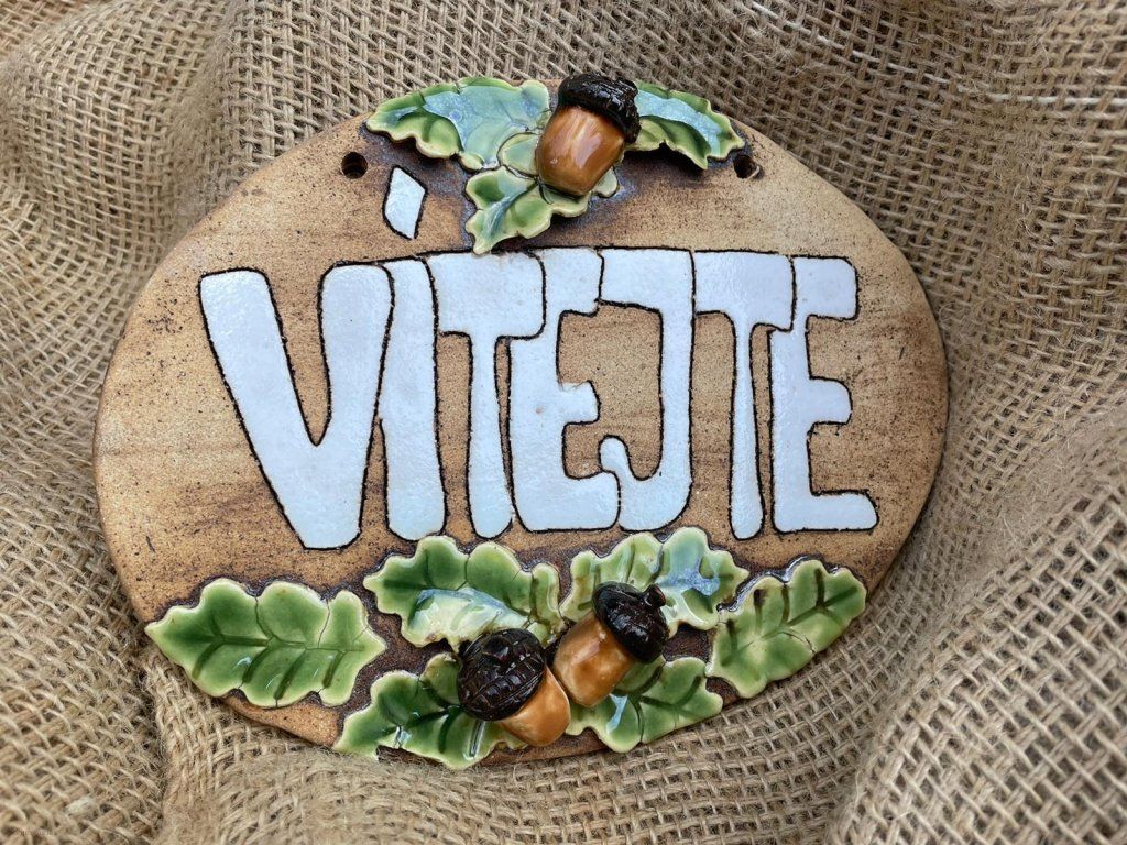 Keramická cedule Vítejte s motivem barevných dubových listů je stylovým doplňkem pro vstup do vašeho domu, na chalupu nebo na zahradu 🍂🏡.