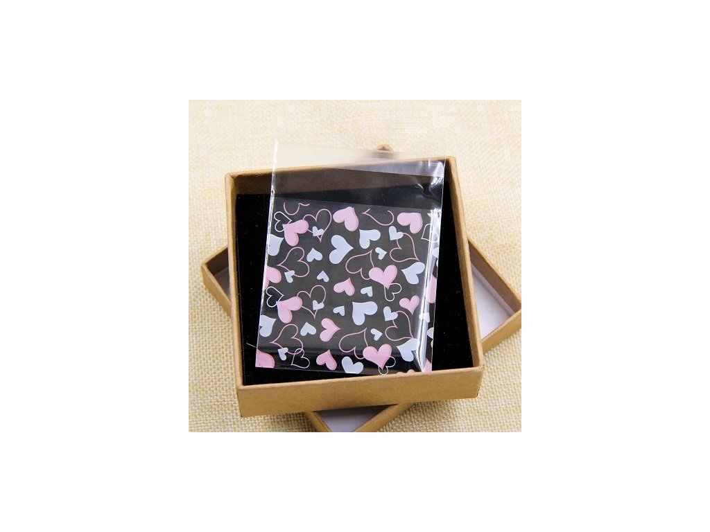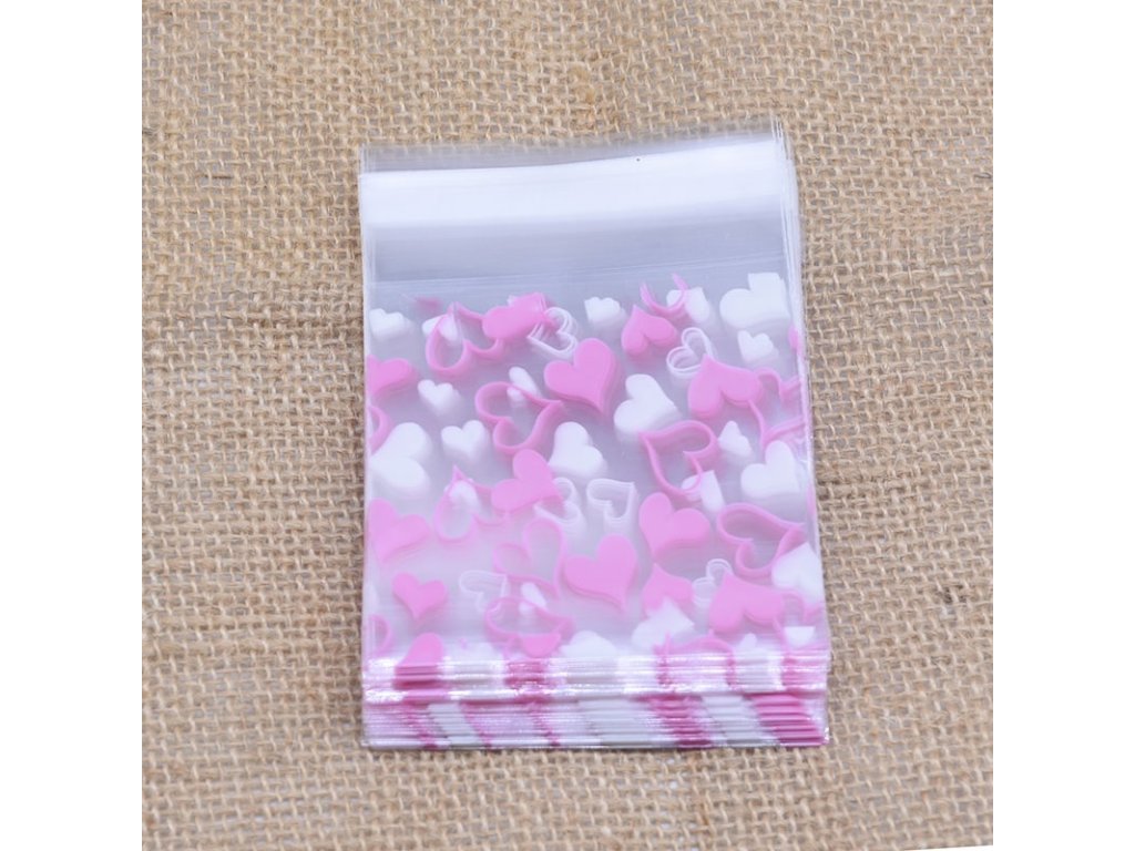 Celofánové sáčky s lepící klopou - motiv srdíček růžových - transparentní 10x10cm