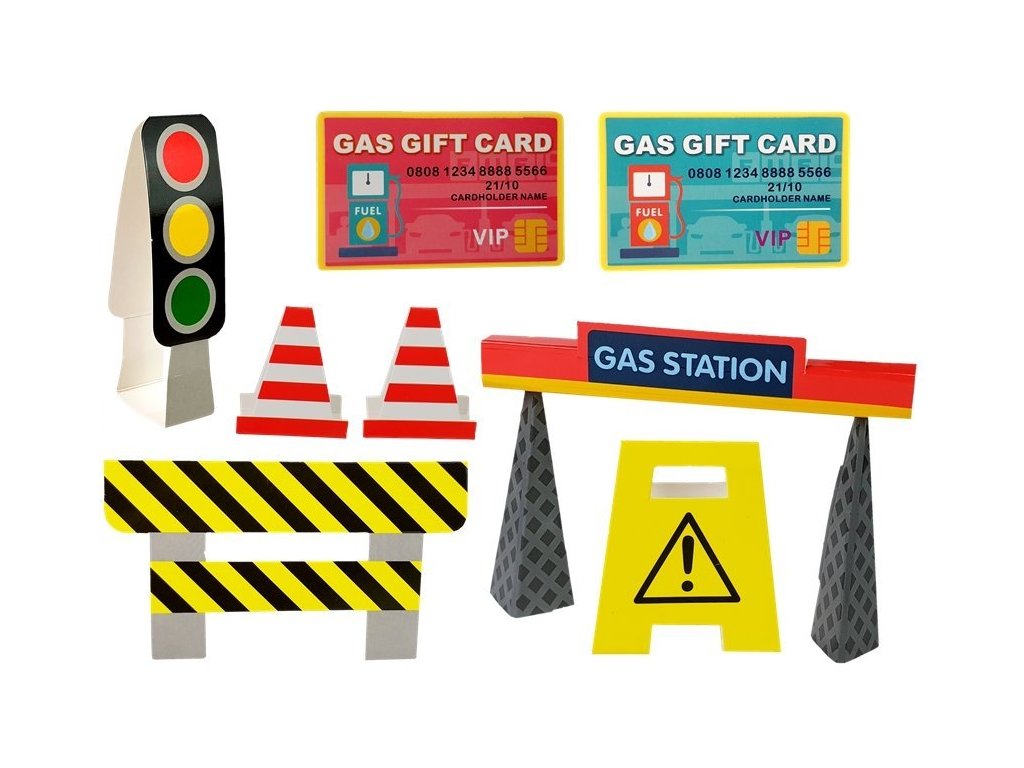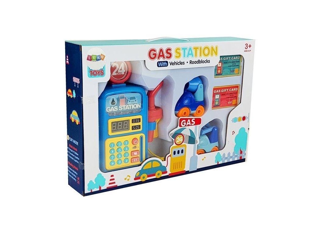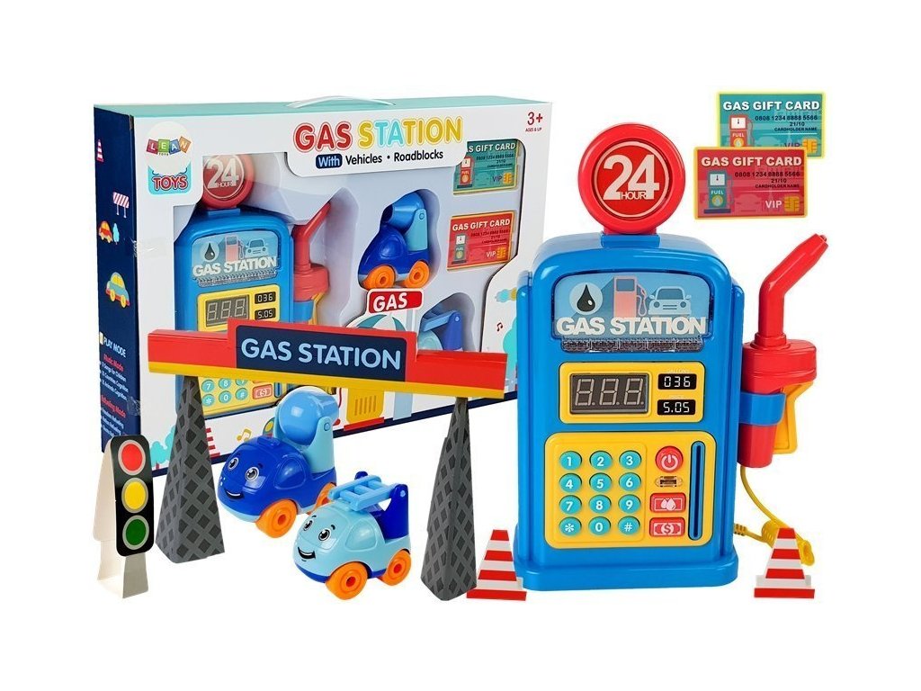 Tato nádherná modrožlutá čerpací stanice umožňuje zábavné tankování, které se pro nejmenší jistě stanou skutečnou zábavou! Hračka má světelné a zvukové signály. Po zapnutí jsou pokyny vyslovovány v angličtině, vaše dítě si tak rozvíjí jazykové dovednosti. Stanice má slot pro kreditní karty, po stisknutí tlačítka na rukojeti se naberou litry. Každé tlačítko skrývá překvapení, takže je pro vaše dítě zábavná, rozmanitost funkcí ho zabaví na celé hodiny. Mezi výhody patří jedenáct různých dětských písniček a učení se 15 různých názvů zvířat. Čerpací stanice má také rukojeť na hadici, která perfektně padne do malých dětských rukou. Sada navíc obsahuje dvě auta s přátelskými tvářemi. Jedno z nich je míchačka na beton a druhé má na střeše žebřík. Součástí balení jsou také dvě kreditní karty, všechny značky, semafory a sloupky. To vašemu dítěti umožní vytvářet nejrůznější scénáře.