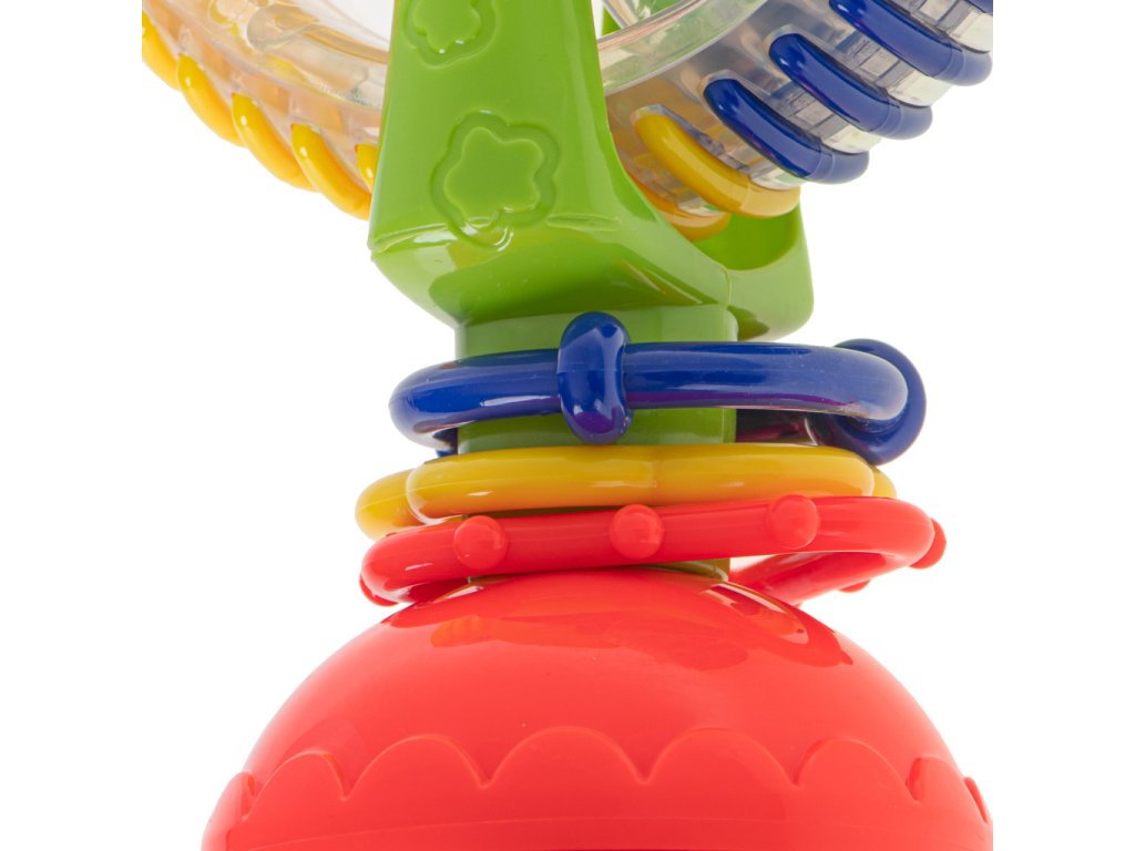 Barevné kuličky, které se uvnitř otáčejí, fungují jako chrastítko.