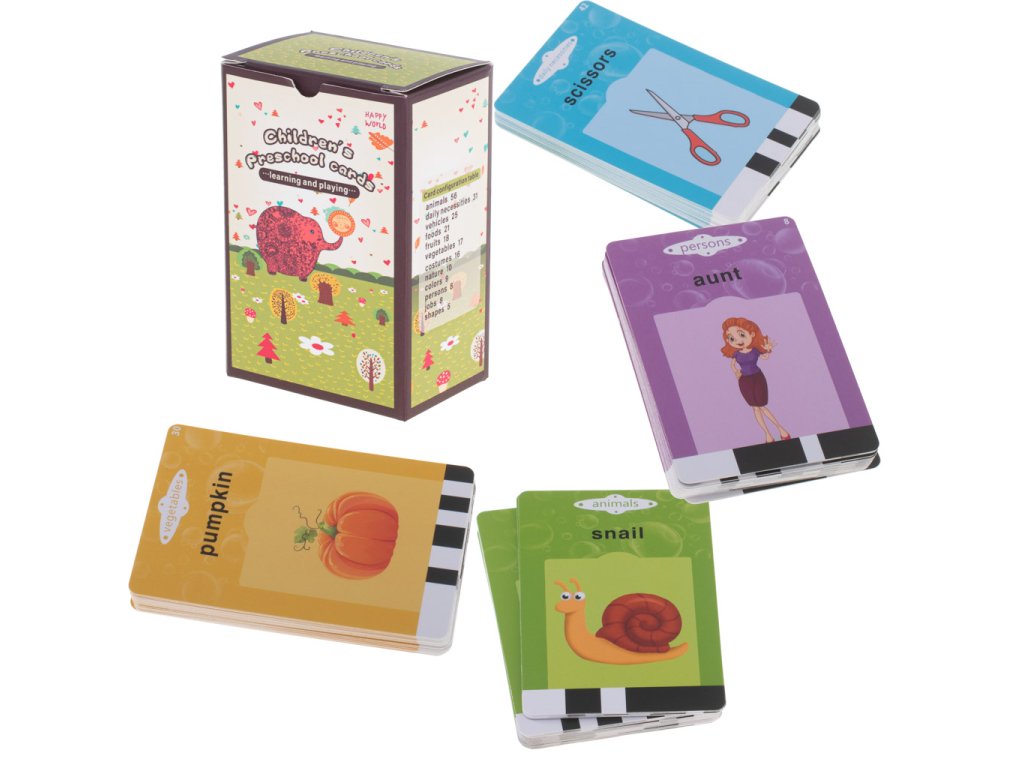 Každá karta v sadě obsahuje dvě nahraná slova, jedno pro každou stránku, a odpovídající kresbu pro pochopení jejich významu. To stimuluje zrak i sluch dítěte, takže se jistě hodí k nejefektivnějšímu způsobu učení pro každé dítě.