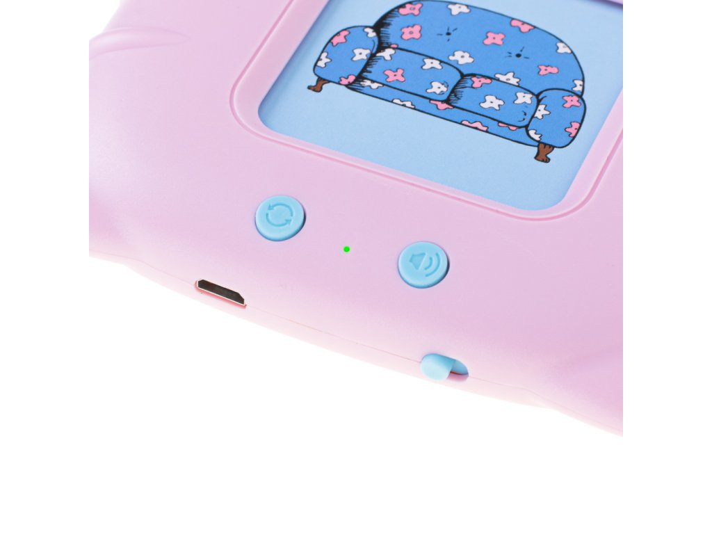 Tlačítka umístěná ve spodní části zařízení umožňují pohodlné a intuitivní ovládání. Tlačítko vpravo slouží k výběru úrovně hlasitosti a tlačítko vlevo vám umožní přehrát nahrávku z aktuálně vložené karty. Děti si mohou slovo nahlas zopakovat a pokud mají potíže s vyslovením nového slova, stisknutím levého tlačítka si snadno znovu poslechnou správnou výslovnost.