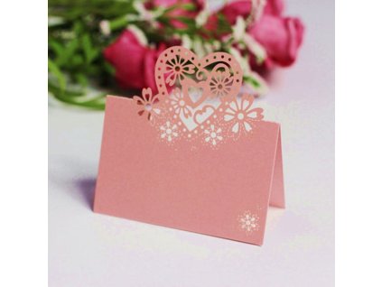 Jmenovky na stůl s růžovým srdíčkem – krásný doplněk...