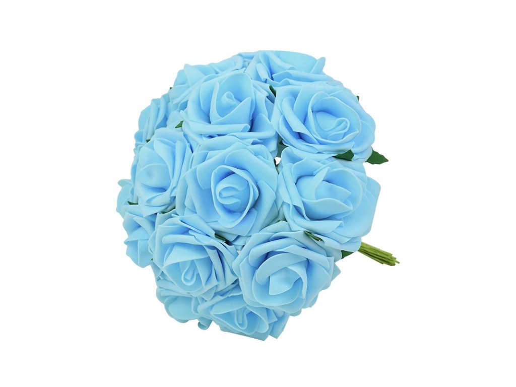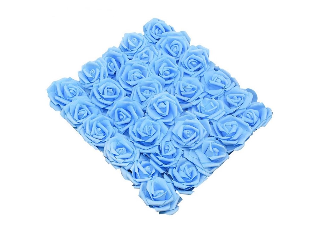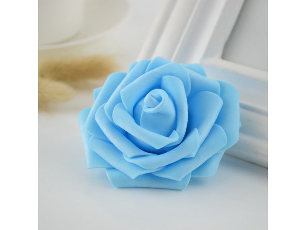Dekorační pěnová růže na drátku – světle modrá (8cm) 1ks