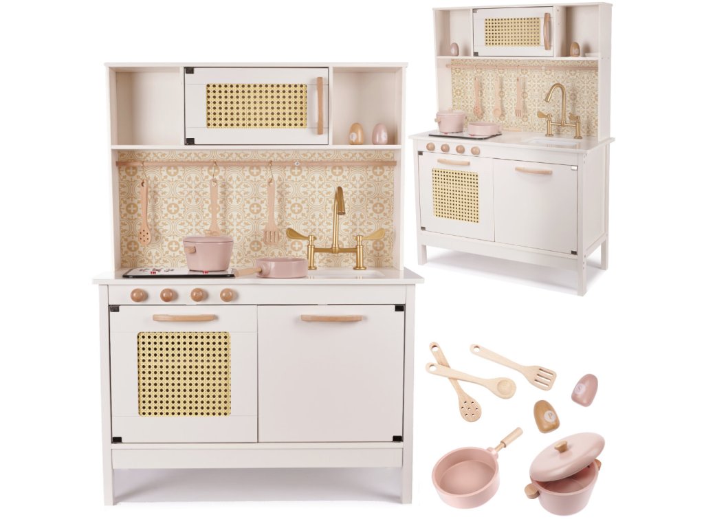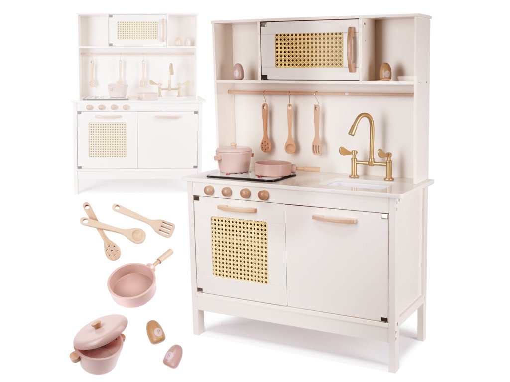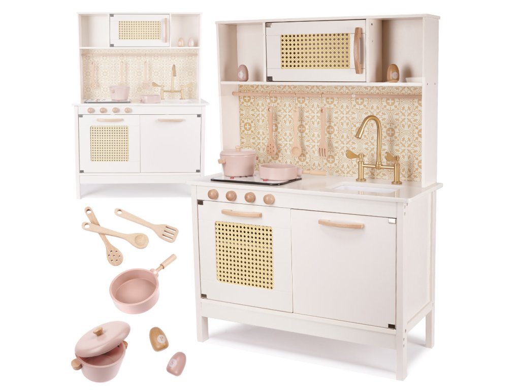 Děti rády napodobují dospělé a následují je v jejich každodenních činnostech a vaření je pro ně jedním z nejfascinujících zážitků. Proto je dřevěná dětská kuchyňka nezbytností pro váš hračkářství – díky ní se děti teleportují do fascinujícího kulinářského světa!