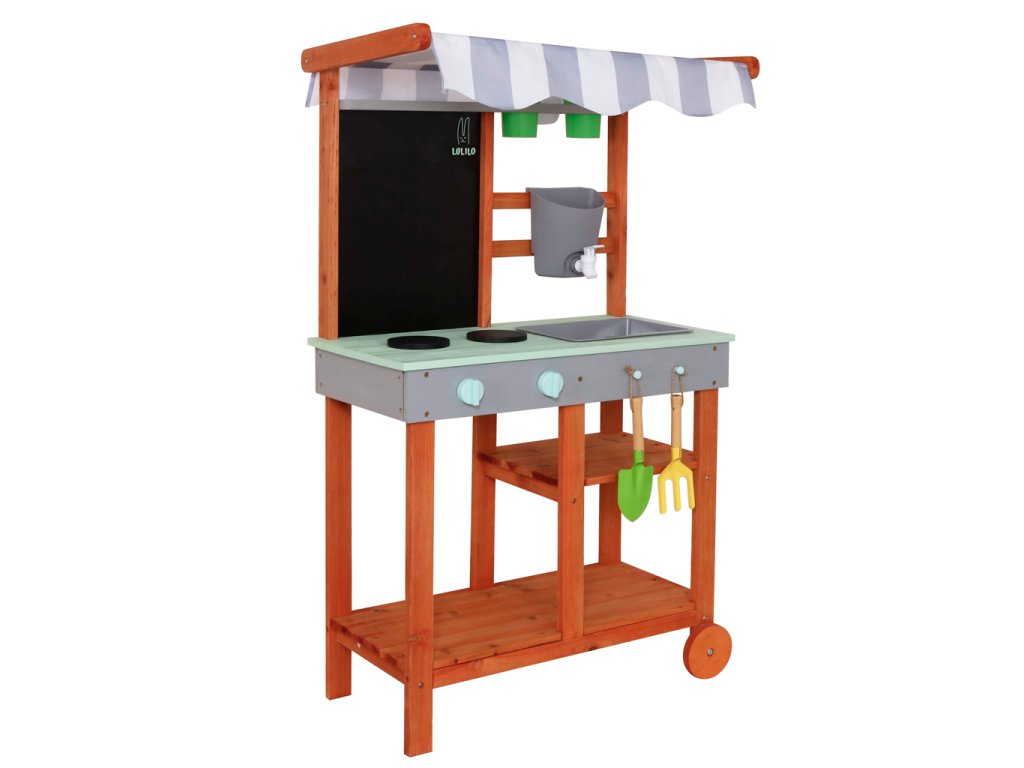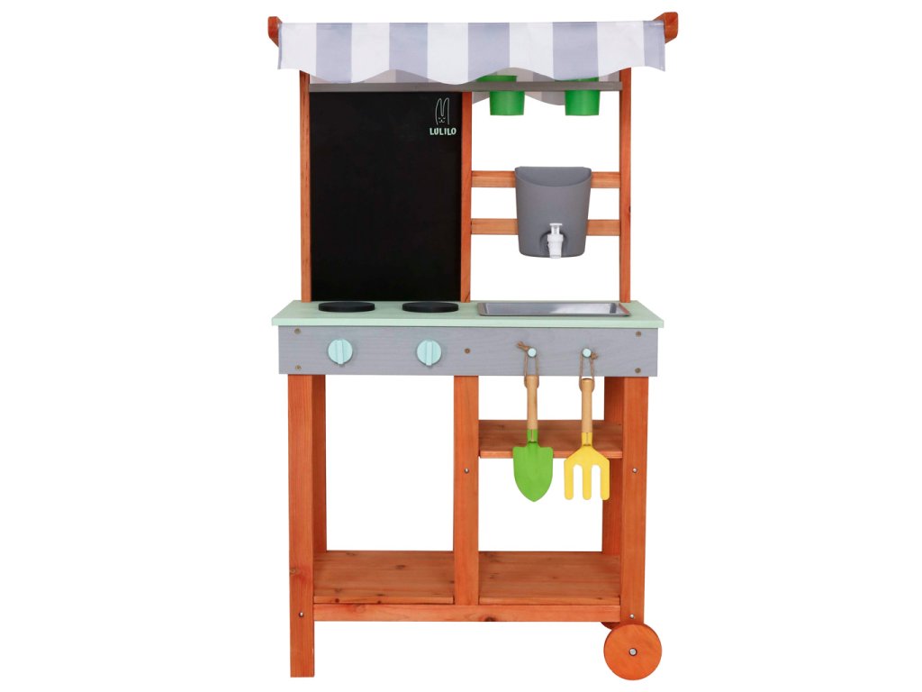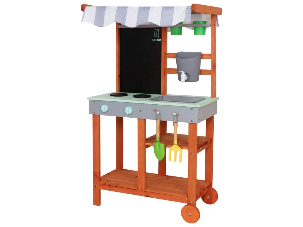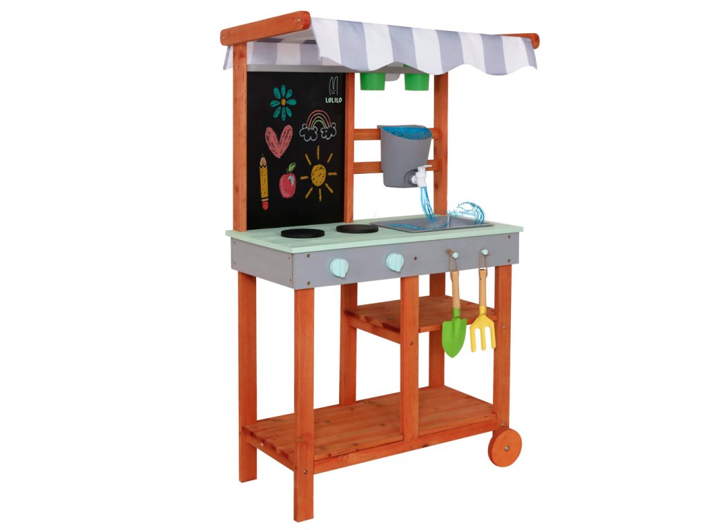 Je to víc než jen hračka – je to zahradní kuchyňka navržená v souladu s přírodou a potřebami dítěte. Tato kuchyňka je vyrobena z impregnovaného, povětrnostním vlivům odolného jedlového dřeva a má odolné dřevo a pevnou konstrukci, která vydrží intenzivní hraní po mnoho sezón.
