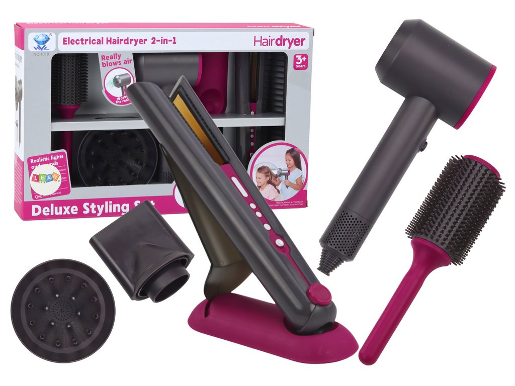 Kadeřnická sada pro děti je neobyčejná hračka, která děti zavede do fascinujícího světa úpravy vlasů. Tato kompletní sada obsahuje fén, žehličku na vlasy, kartáč, hřeben a náhradní nástavce a také praktický stojan na žehličku. Je to vše, co malý kadeřník potřebuje, aby se cítil jako skutečný kadeřník.