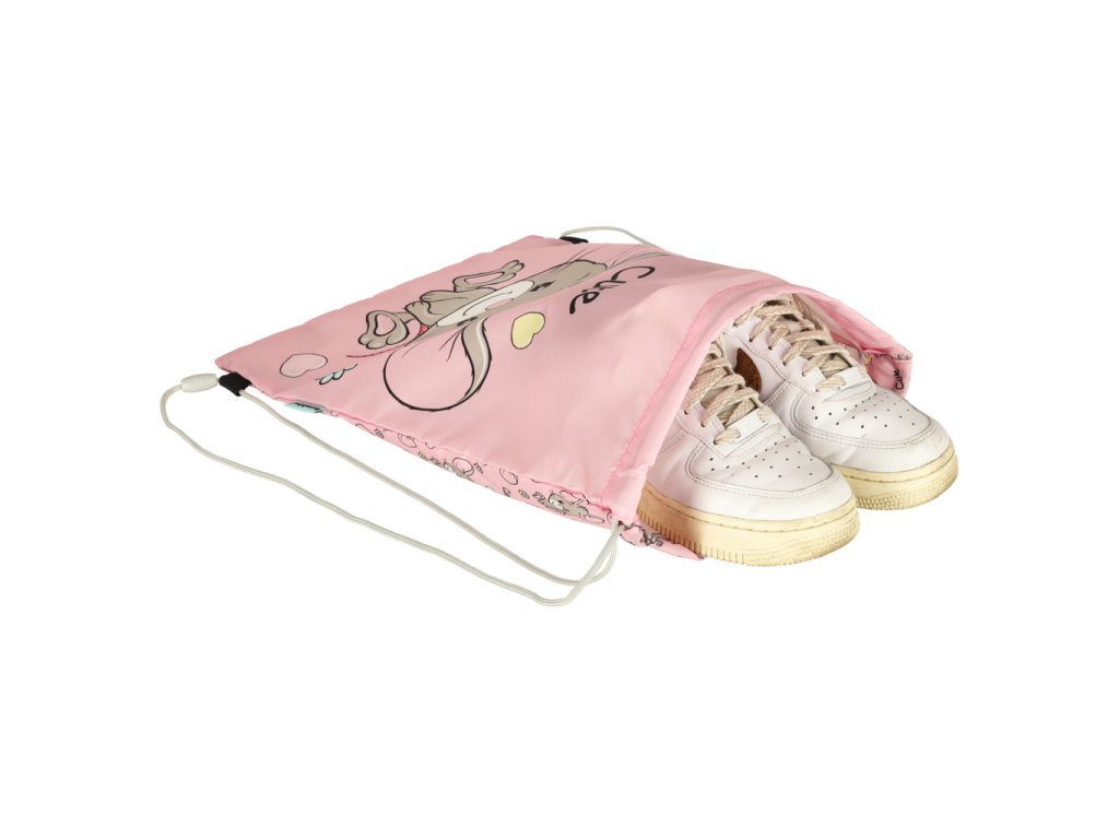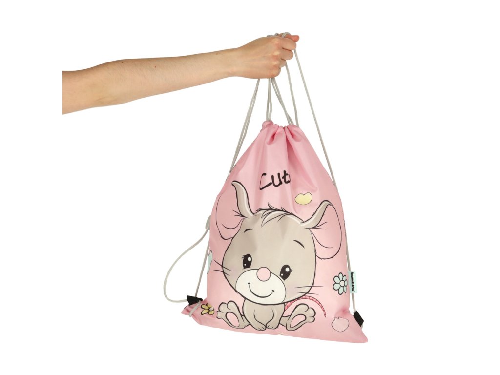 má dvojité boční šňůrky, které umožňují nošení tašky v ruce, na rameni nebo na zádech