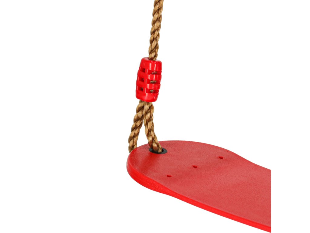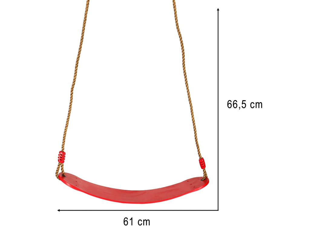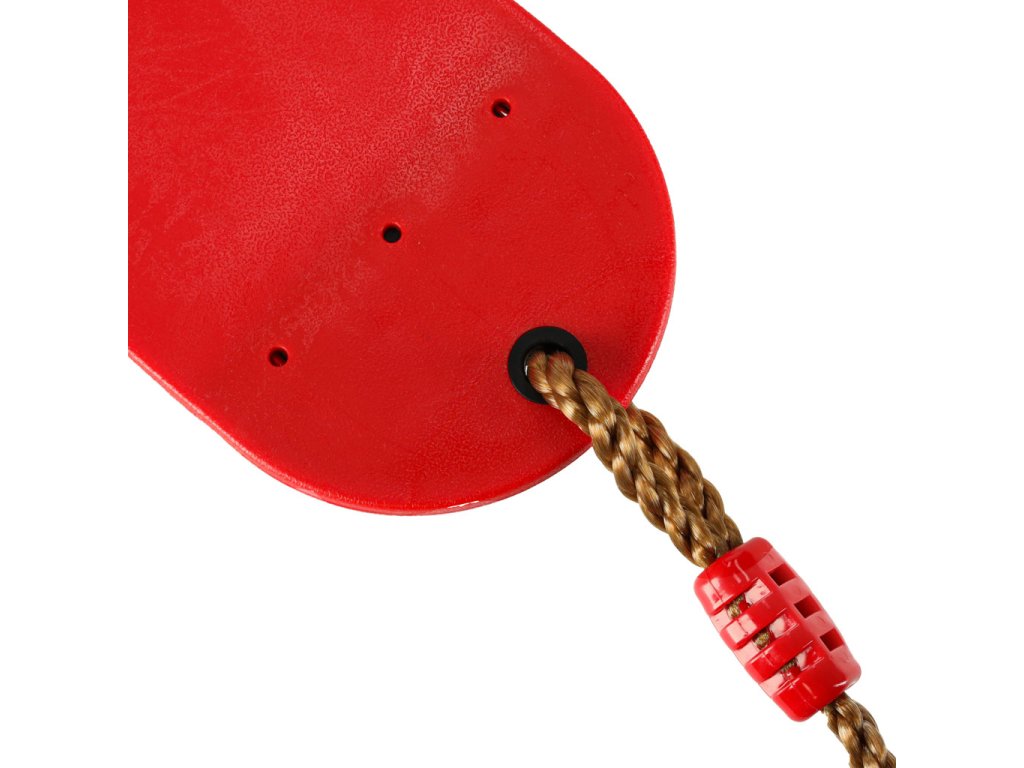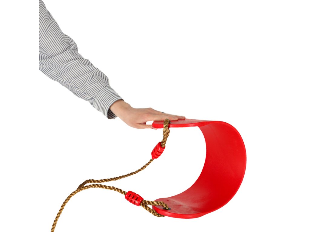 Tato červená houpačka je podepřena pevnými, pletenými lany, která lze pomocí kovových kroužků připevnit k hákům, očkům nebo karabinám. To umožňuje snadné přizpůsobení prostoru. Zahradní houpačku je nejlepší instalovat na bezpečné místo na rovném a rovném povrchu. Po instalaci se vyplatí ji v praxi vyzkoušet, abyste zajistili optimální hmotnost a délku lana. Základna houpačky je vyrobena z materiálu, který je méně náchylný k povětrnostním podmínkám, což zaručuje, že tato zahradní houpačka vydrží mnoho let.