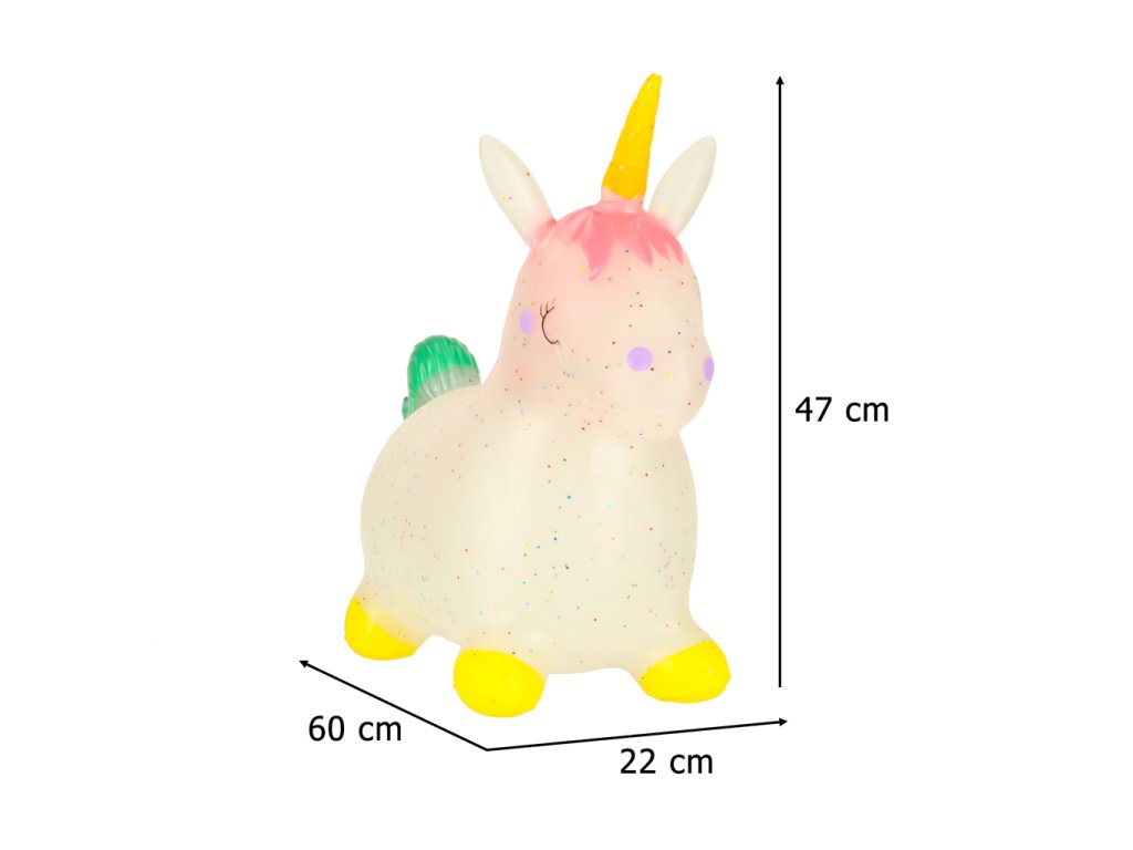 Skákací jednorožec je hračka, která vašemu dítěti poskytne radost, fyzickou aktivitu a pomůže rozvíjet motorické dovednosti. Tento barevný, měkký a ohebný gumový skákací koník povzbuzuje k pohybu a zároveň podporuje rozvoj rovnováhy, koordinace a svalové síly.