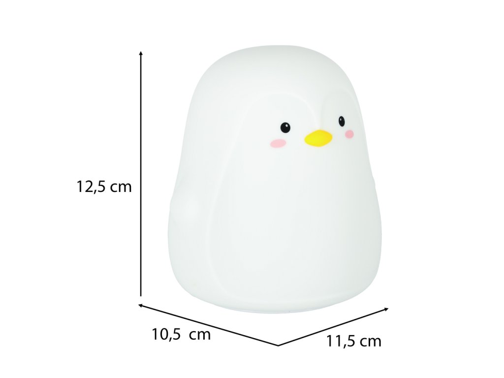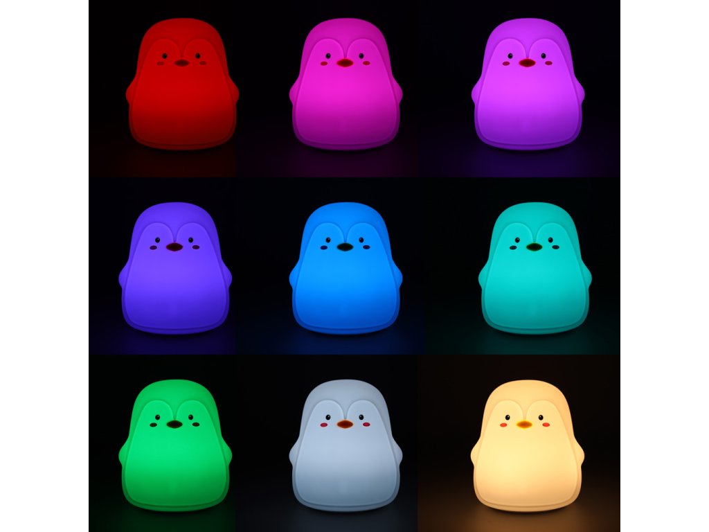 Noční světlo pro děti je perfektním společníkem na spaní, který odradí příšery a zajistí, že děti klidně usínají. Lampa má tvar tučňáka, který svítí v různých barvách – režim RGB. Na spodní straně má vypínač, ale lze ji také aktivovat dotykem. Má vestavěnou dobíjecí baterii, takže ji lze umístit kamkoli.