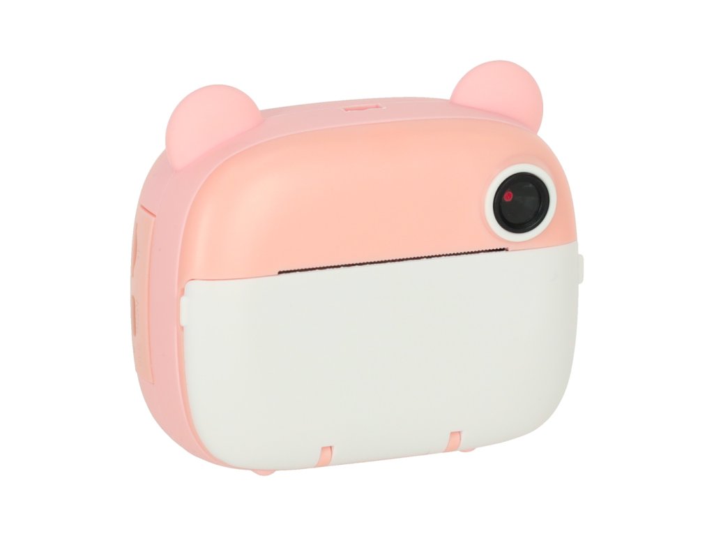 Růžový instantní fotoaparát je hračka, která podporuje kreativní hraní. Umožňuje fotografování (2 objektivy - přední a zadní), nahrávání videa v rozlišení 1080p, přehrávání hudby a hraní her. Fotoaparát tiskne černobílé fotografie, které si děti mohou vybarvovat pomocí šesti přiložených fixů. Sada obsahuje tři role papíru do tiskárny, paměťovou kartu s kapacitou 32 GB, růžovou šňůrku na krk a USB kabel pro nabíjení zařízení. Fotoaparát podporuje rozvoj drobné motoriky a stimuluje kreativní myšlení dětí.