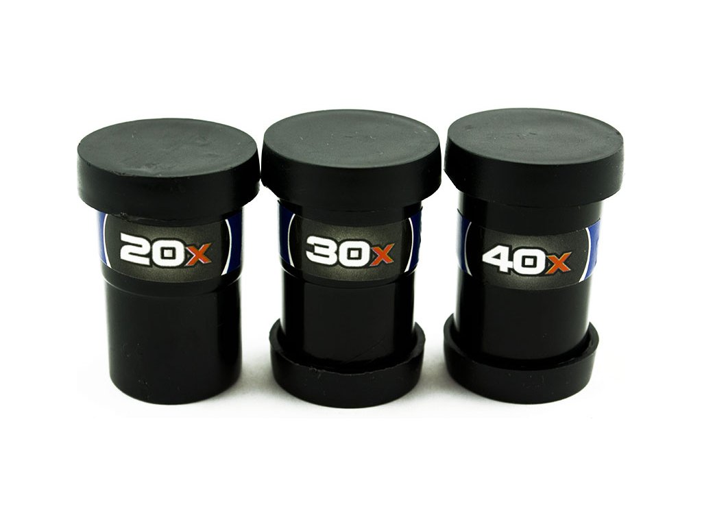 Dalekohled s vyměnitelnými objektivy různého zvětšení (20x, 30x, 40x).