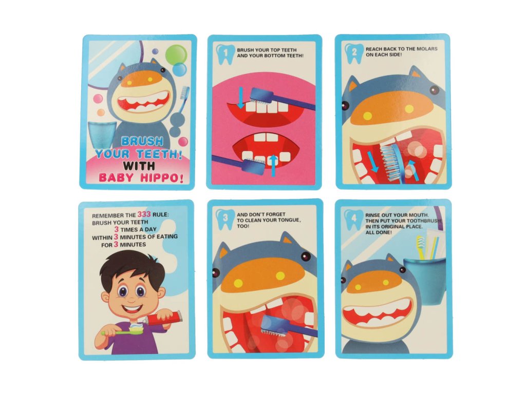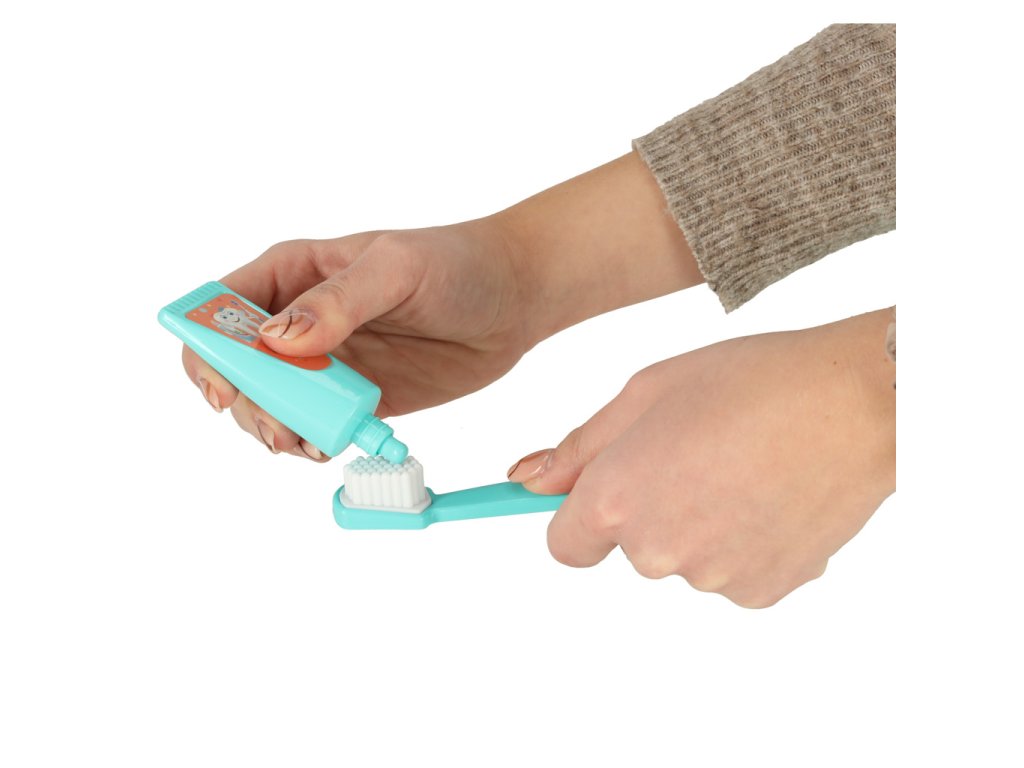 Sada navíc obsahuje vzdělávací karty v angličtině s cennými tipy pro správnou ústní hygienu. Hračka rozvíjí jemnou motoriku, obratnost a kreativitu a zároveň učí děti důležitosti každodenního čištění zubů.