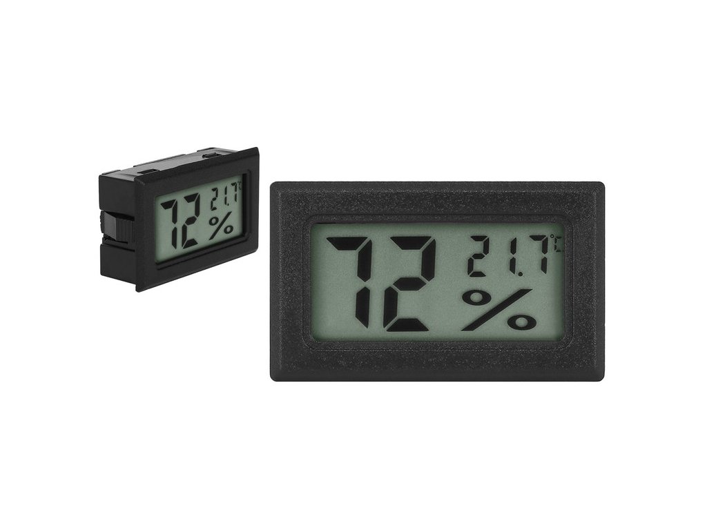 Digitální teploměr a vlhkoměr umožňuje široký rozsah měření; teplota od -50 °C do 70 °C, vlhkost od 10 % RH do 99 % RH. Sada obsahuje sadu baterií, díky kterým je teploměr připraven k použití. Teploměr je napájen dvěma bateriemi 1,5V LR44, které zajišťují dlouhou životnost.