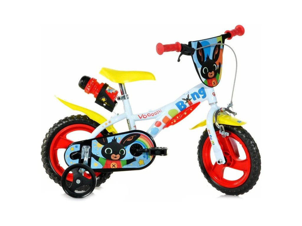 Dětské kolo DINO Bikes - 12" Bing, kolo pro malé závodníky a příznivce pohádky Bing. Plastový ráfek s plnou pneumatikou (není třeba dohušťovat), přední čelisťová brzda, stálý převod, držák na lahev a ochranný kryt řetězu. Doporučený věk a výška dítěte: 2-4 roky, 87-120 cm.