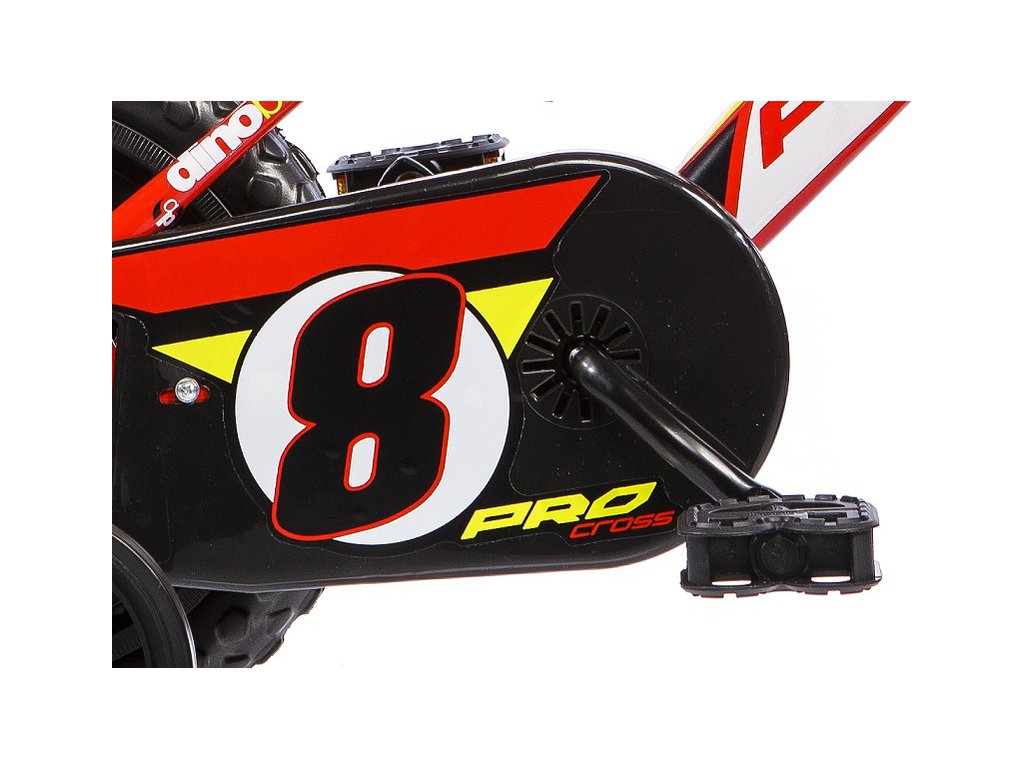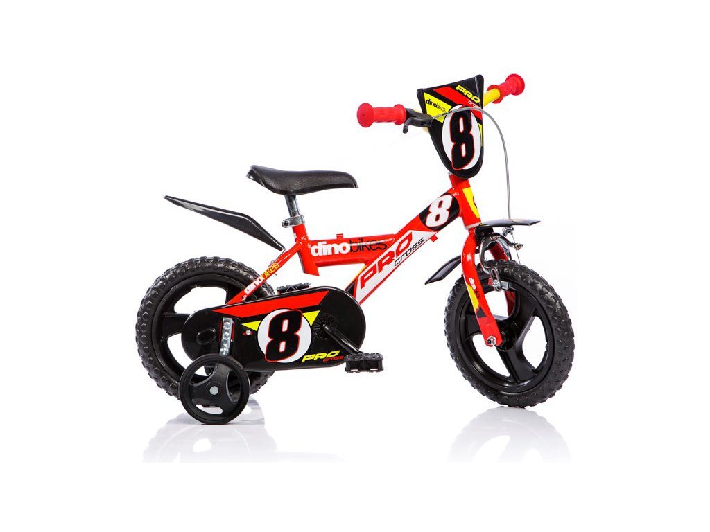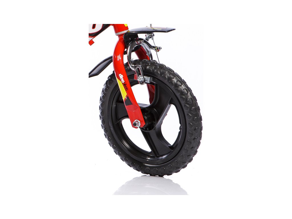 Dětské kolo Dino bikes - 12" červené. Výrobce Dino Bikes Italy vyrobilo sportovní kolo pro malé závodníky. Kola mají plastový ráfek s plnou pneumatikou, proto netřeba kola dohušťovat. Kolo má přední čelisťovou brzdu. Stálý převod. Kolo je vybaveno pomocnými kolečky.