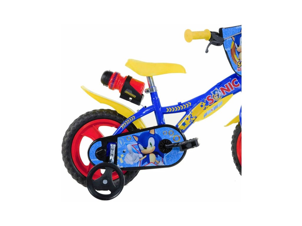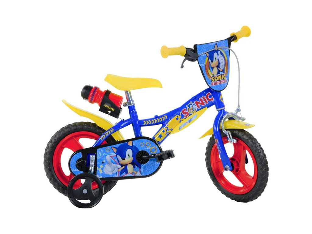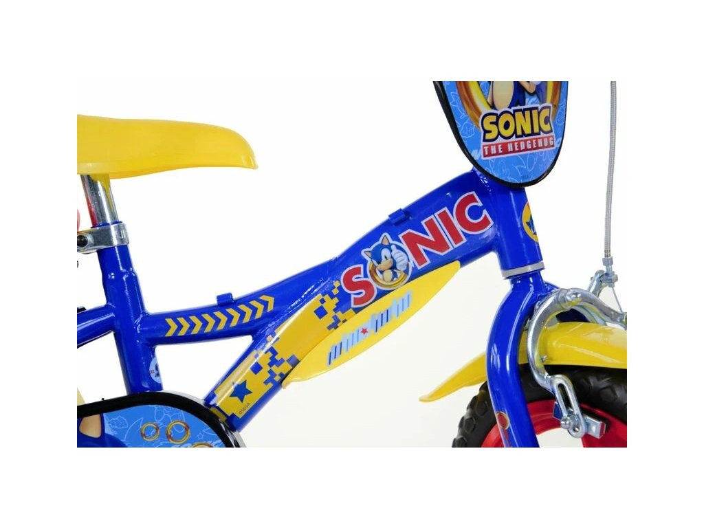 Dětské kolo DINO Bikes - 12" s motivem postavy Sonic z konzolové hry. Plastový ráfek s plnou pneumatikou (není třeba dohušťovat), přední čelisťová brzda, stálý převod, držák na lahev a ochranný kryt řetězu. Doporučený věk a výška dítěte: 2-4 roky, 87-120 cm.