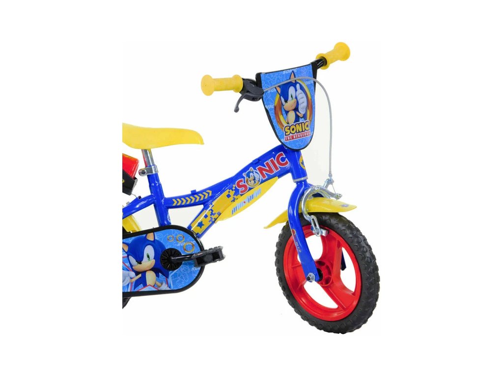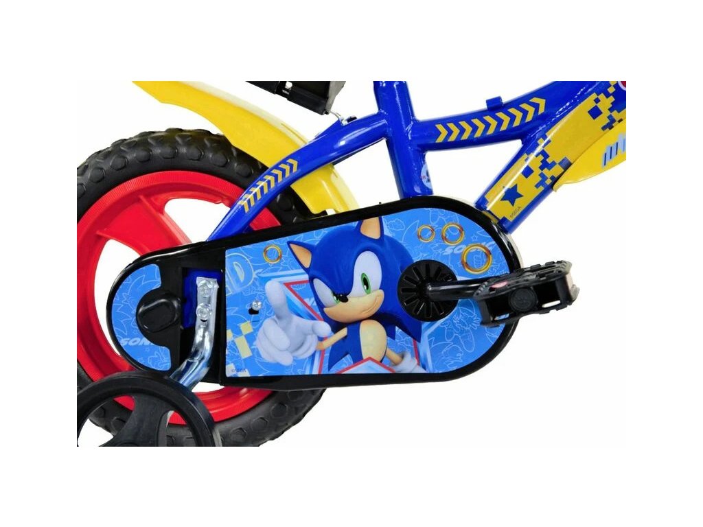 Dětské kolo DINO Bikes - 12" s motivem postavy Sonic z oblíbené konzolové hry. Plastový ráfek s plnou pneumatikou (není třeba dohušťovat), přední čelisťová brzda, stálý převod, držák na lahev a ochranný kryt řetězu.