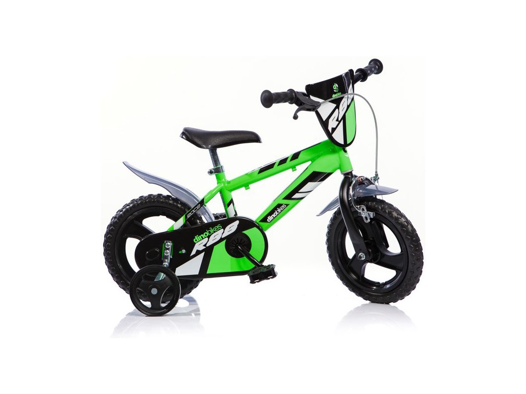 Dětské kolo - 12" zelené, sportovní kolo pro malé závodníky. Kola mají plastový ráfek s plnou pneumatikou, proto netřeba kola dohušťovat. Přední čelisťová brzda.