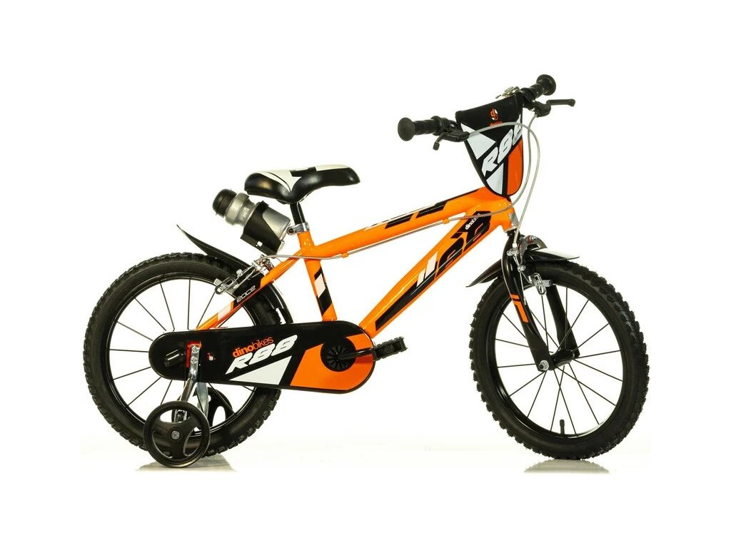 Dětské kolo DINO Bikes - 14" oranžové, kolo pro malé závodníky. Kvalitní, vzduchem plněné pneumatiky s drátovým výpletem ráfků, volnoběžný převod, čelisťové brzdy na obě kola.