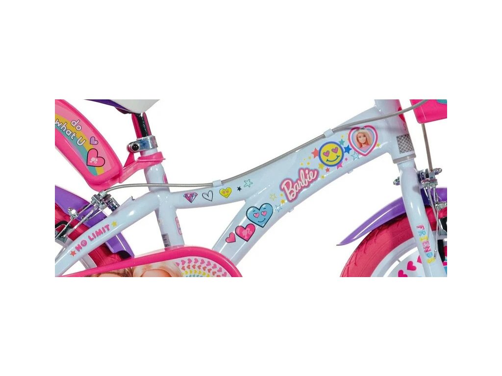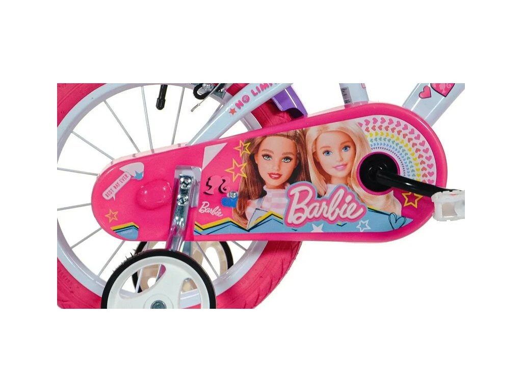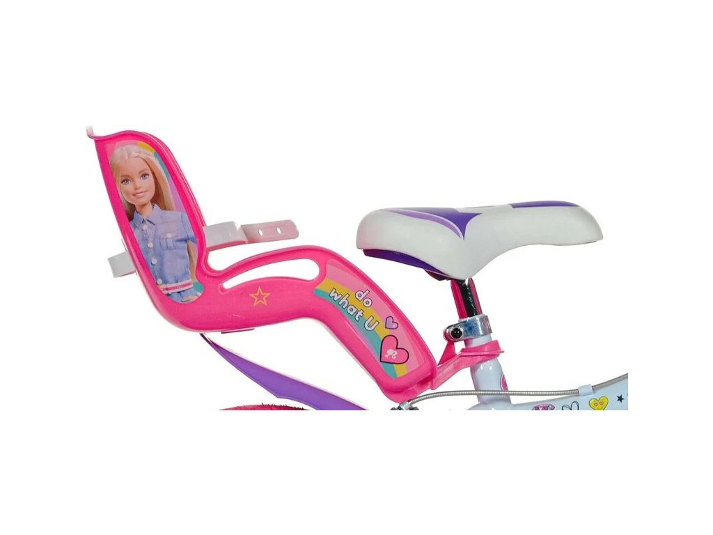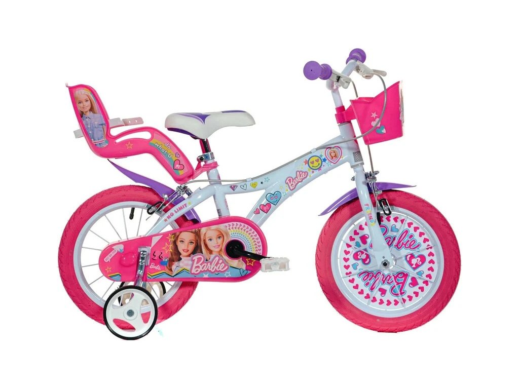 Dětské kolo DINO Bikes - 16" s úžasný motivem oblíbených panenek Barbie, sedačkou pro panenku a košíkem. Vzduchem plněné pneumatiky s drátovým výpletem ráfků, volnoběžka, přední a zadní čelisťová brzda. Přídavná kolečka, blatníky. Doporučený věk a výška dítěte: 4-6 roků, 107-138 cm.