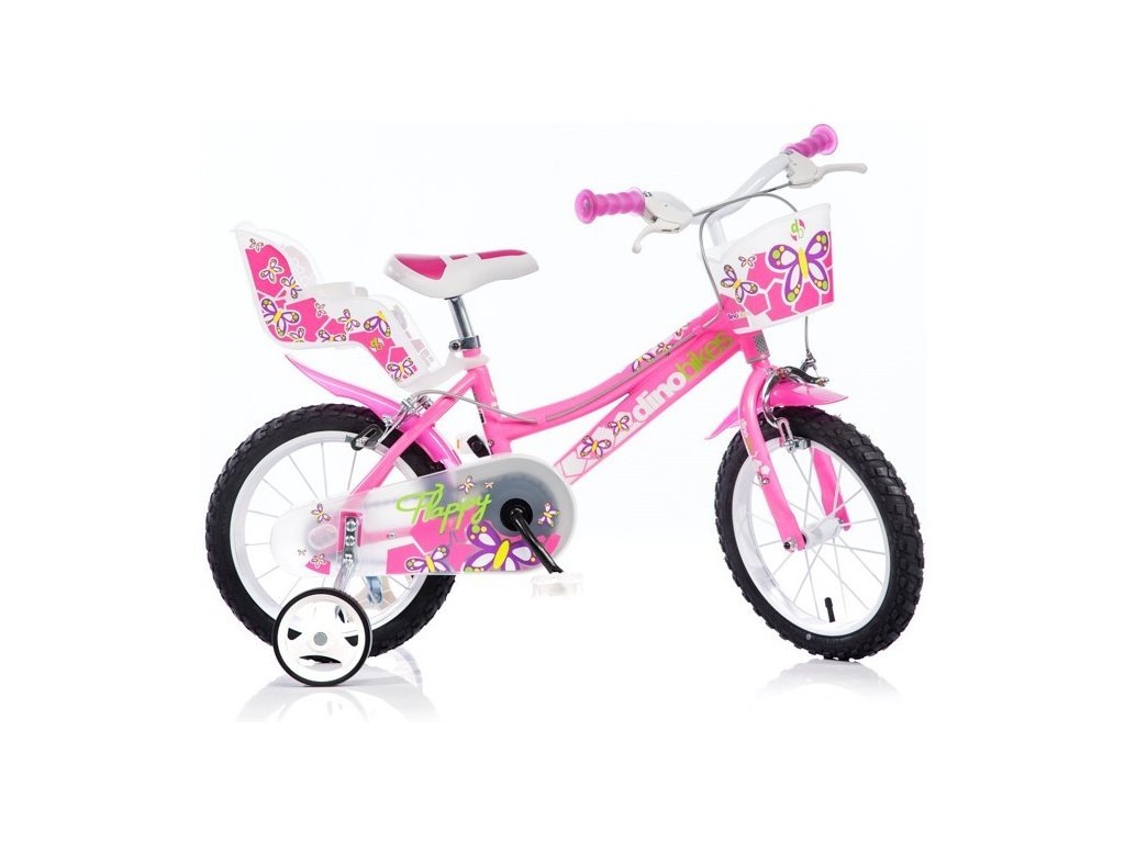 Má vaše dceru ráda růžovou barvu? Má mezi 4-6 rokem? Jestli ano, tak neváhejte koupit kolo. Italské Dino Bikes má skvělou růžovou barvu, brzdy na obě kola, pomocné kolečka, košík a sedačku pro panenku.