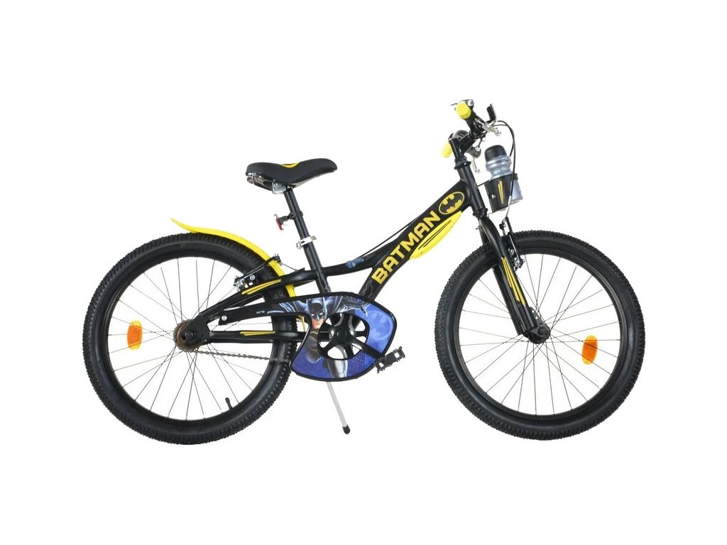 Chlapecké dětské kolo DINO Bikes - 20" s oblíbeným motivem Batman. Odlehčený rám z Hiten oceli, hliníkové ráfky, čelisťové brzdy na obě kola a volnoběžka. Přední držák na lahev, kryt řetězu a blatníky.