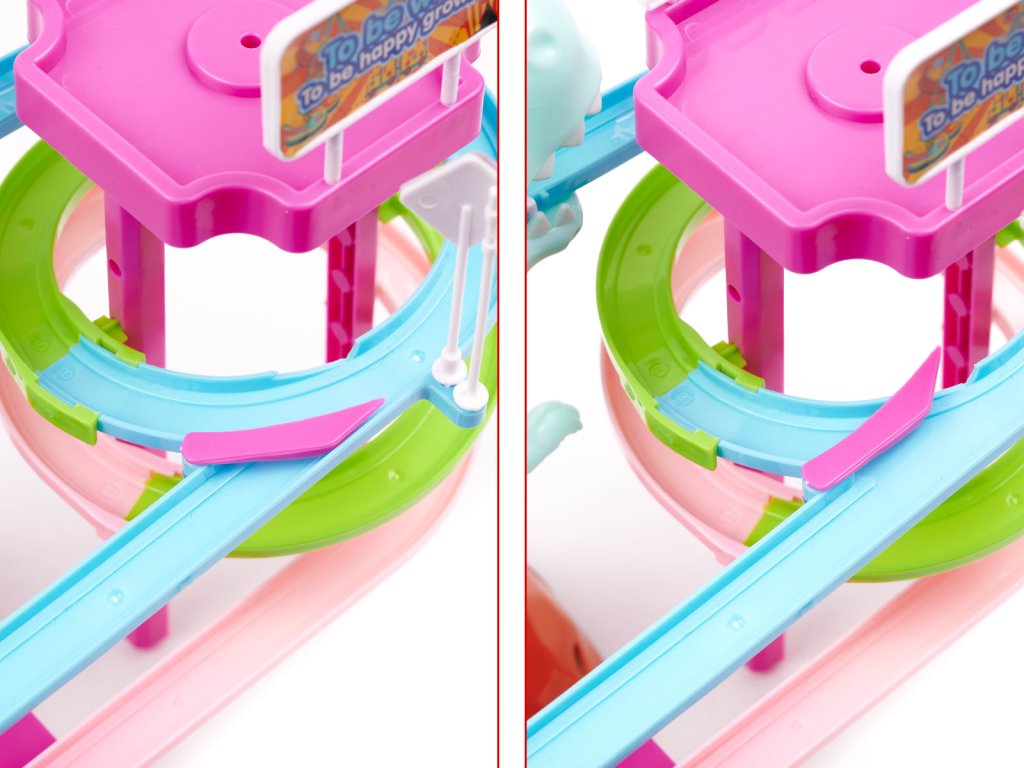 Toto je hračka, která vydává zvuky. Autíčka mají vlastní pohon, takže se mohou pohybovat po klikaté dráze nahoru a dolů.