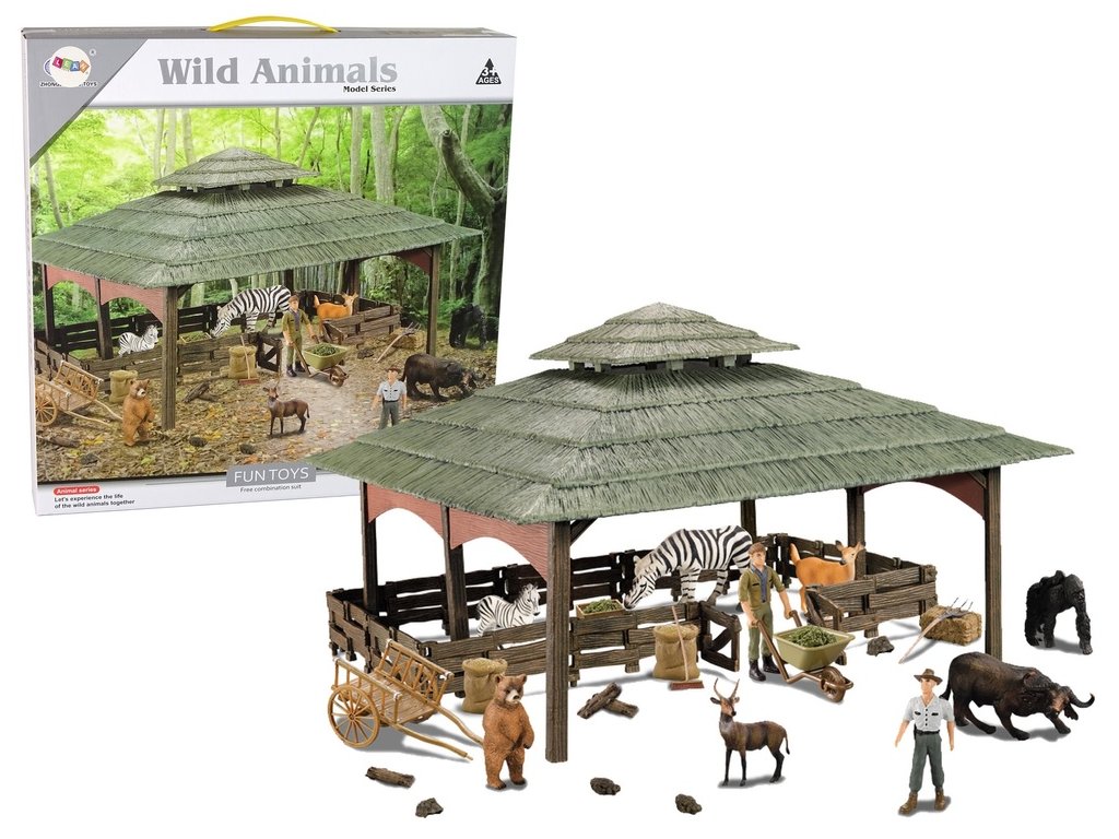 Otevřená bouda s ohrádkou bude místem pro vaše figurky. Velikost výběhu pro zvířata je čistě na vás a na tom, co se rozhodnete postavit. Na pořádek kolem usedlosti budou dohlížet dva farmáři a figurky zvířat budou mít své místo.