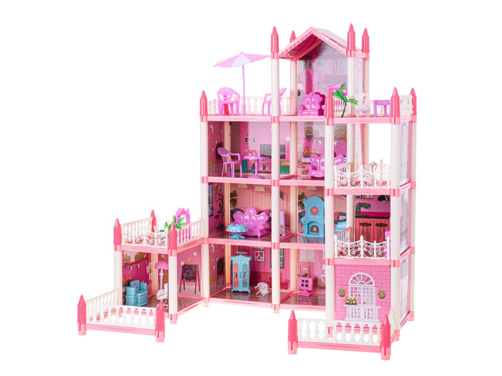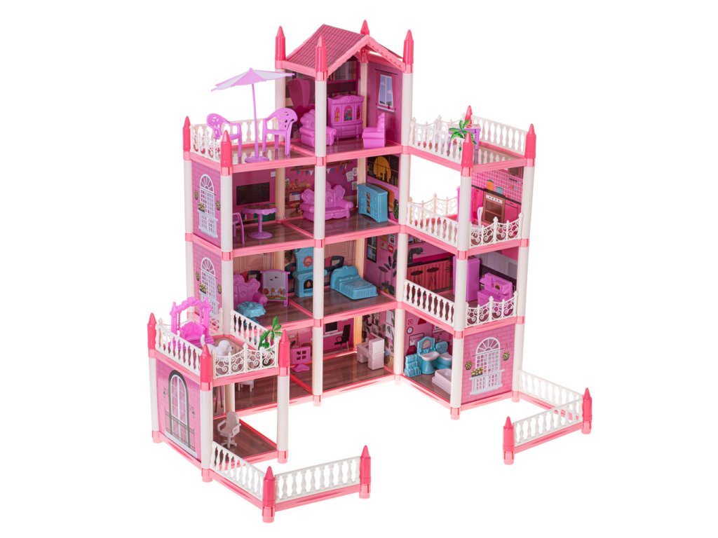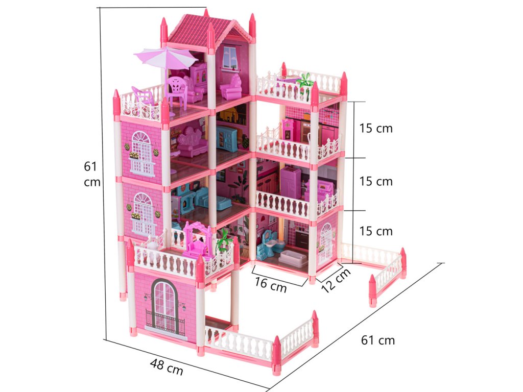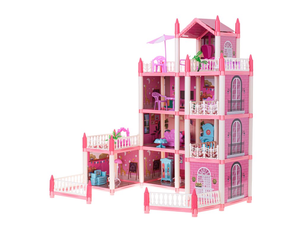 O čem sní každý majitel panenky? Samozřejmě o domečku, kde by mohly bydlet všechny panenky! Čtyři patra, spousta pokojů, velká zahrada a několik teras? To zní ideálně! Fantastický domeček pro panenky, který zaručí super zábavu pro každé dítě a jeho panenky. Odteď už vaše panenky nebudou muset spát na podlaze, ale budou mít své vlastní čtyři rohy v krásné růžové vile.
