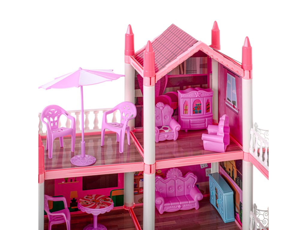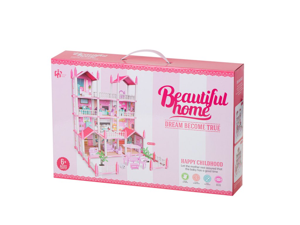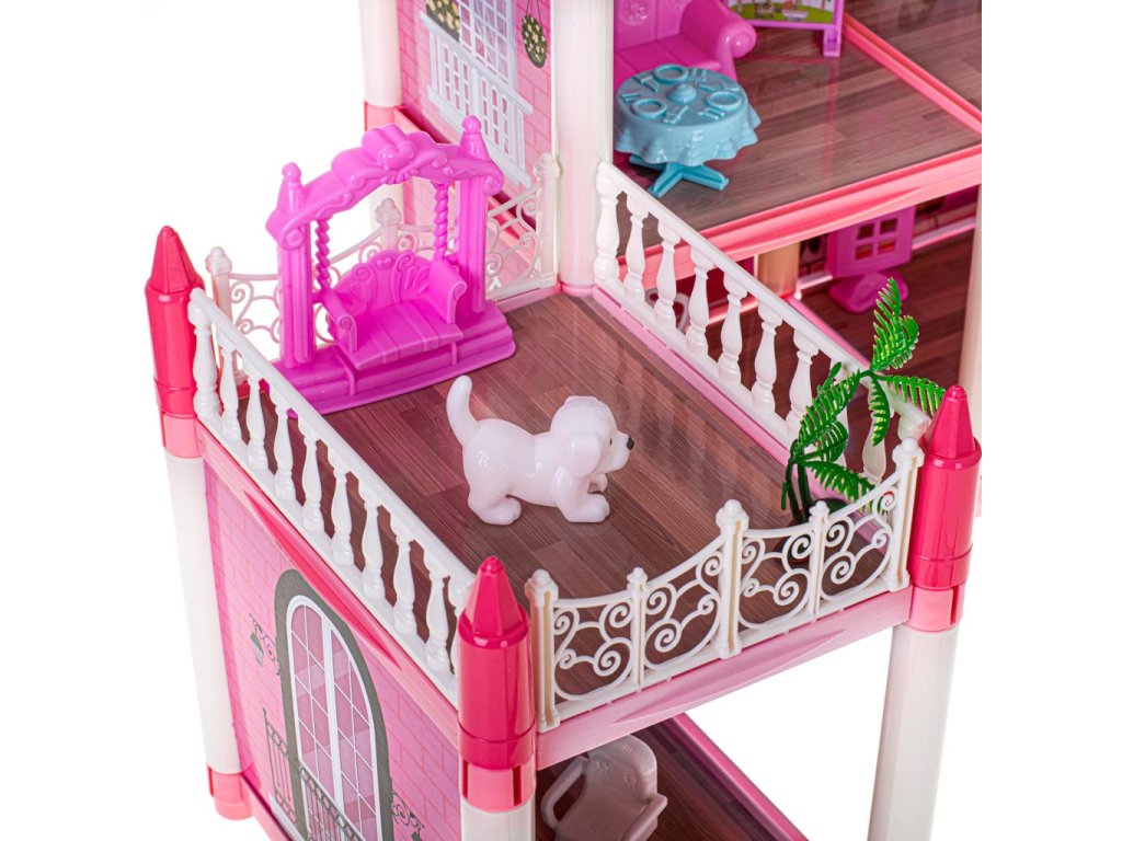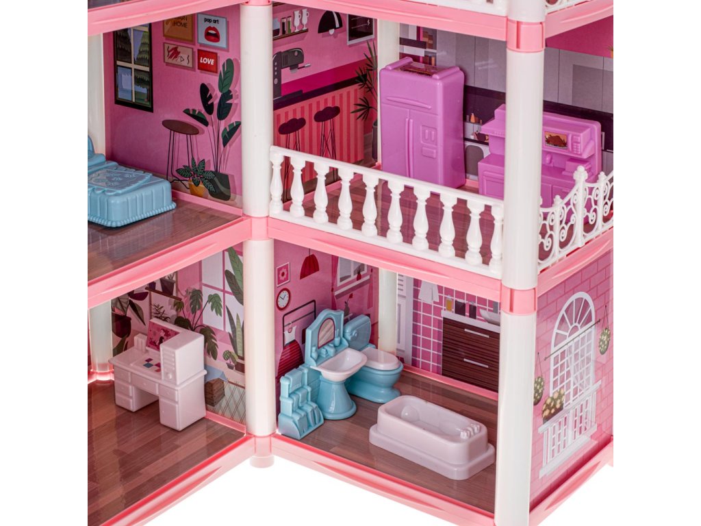 O čem sní každý majitel panenky? Samozřejmě o domečku, kde by mohly bydlet všechny panenky! Čtyři patra, spousta pokojů, velká zahrada a několik teras? To zní ideálně! Fantastický domeček pro panenky, který zaručí super zábavu pro každé dítě a jeho panenky. Odteď už vaše panenky nebudou muset spát na podlaze, ale budou mít své vlastní čtyři rohy v krásné růžové vile.