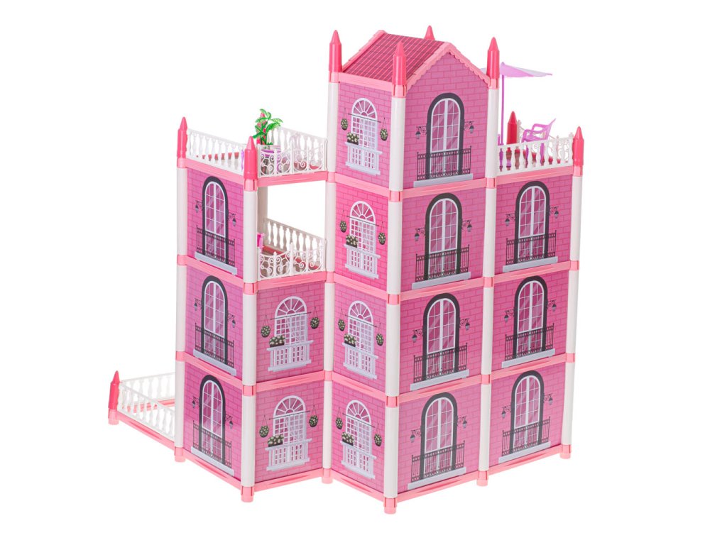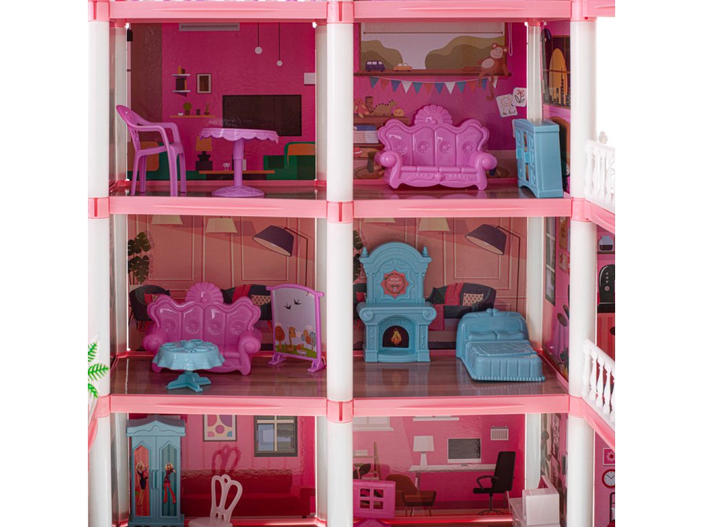 Domeček pro panenky s nábytkem, růžový, DIY, 4 patra