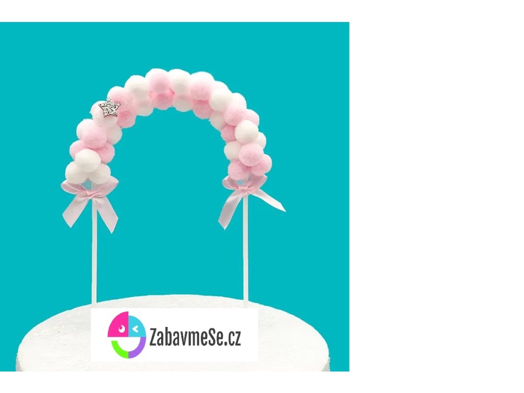 Dortový zápich - oblouk z bambulek - (růžovo bílý 20x14cm)