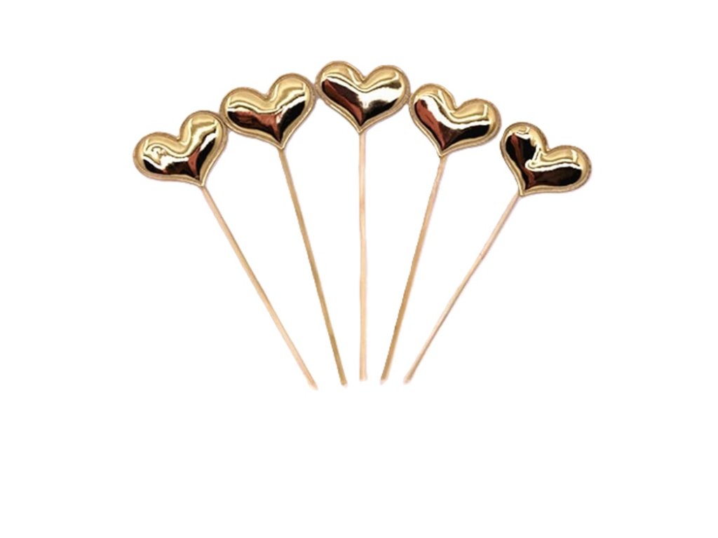 Elegantní dortový zápich ve tvaru zlatého srdce je dokonalou dekorací pro narozeninové oslavy, svatby, výročí a další slavnostní příležitosti.