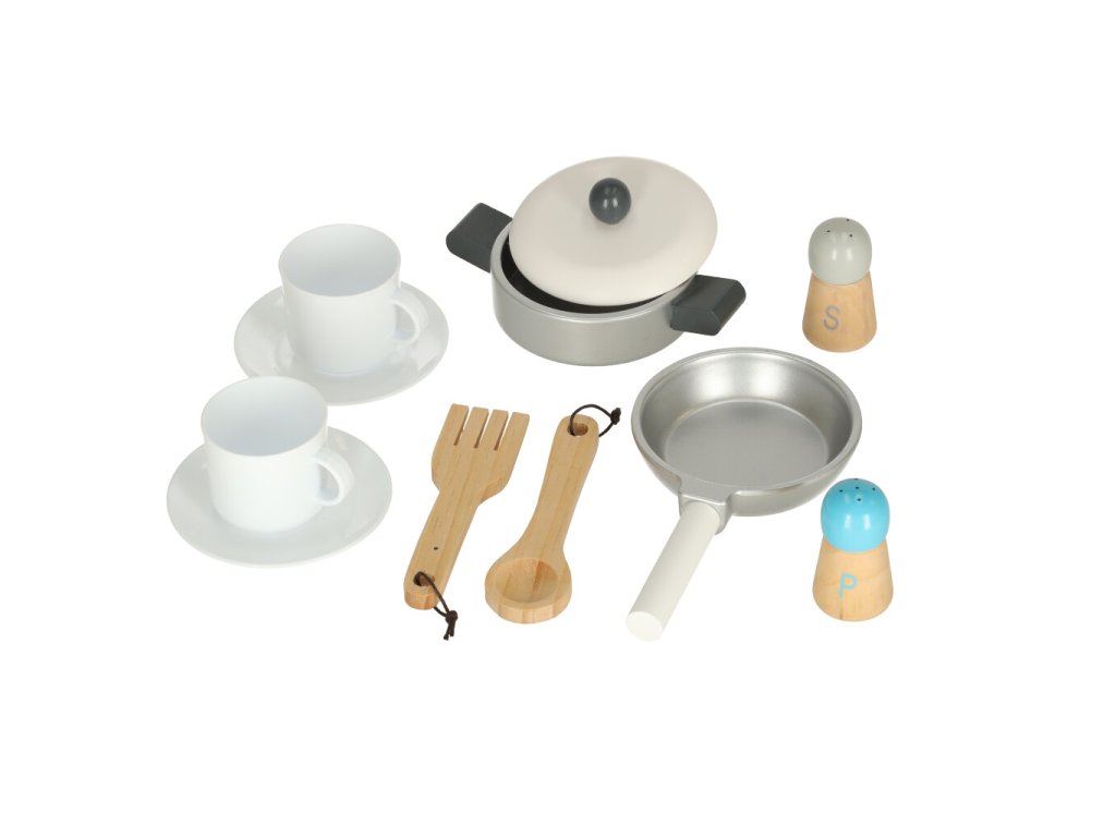 Zářivé barvy a velké množství dřevěných kuchyňských doplňků upoutají pozornost každého dítěte. Celá sada si jistě získá srdce batolat a poskytne spoustu nekonečné zábavy!