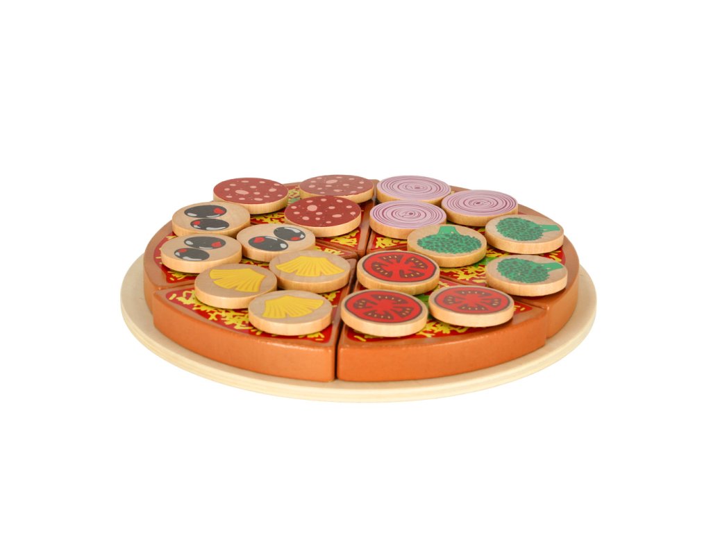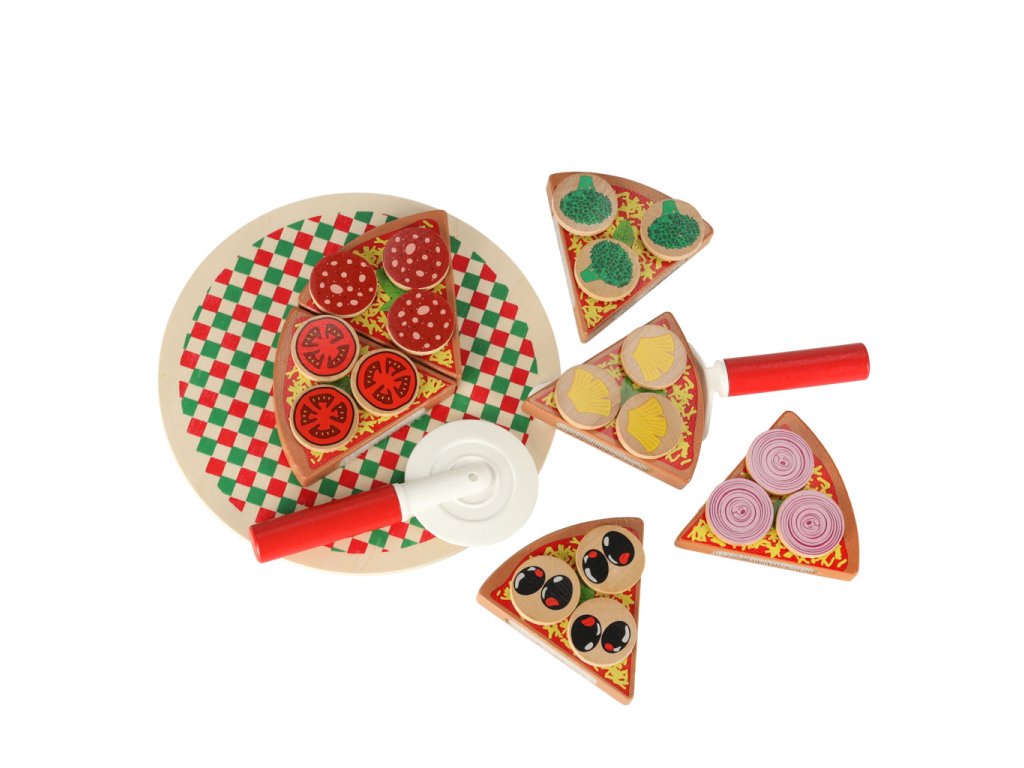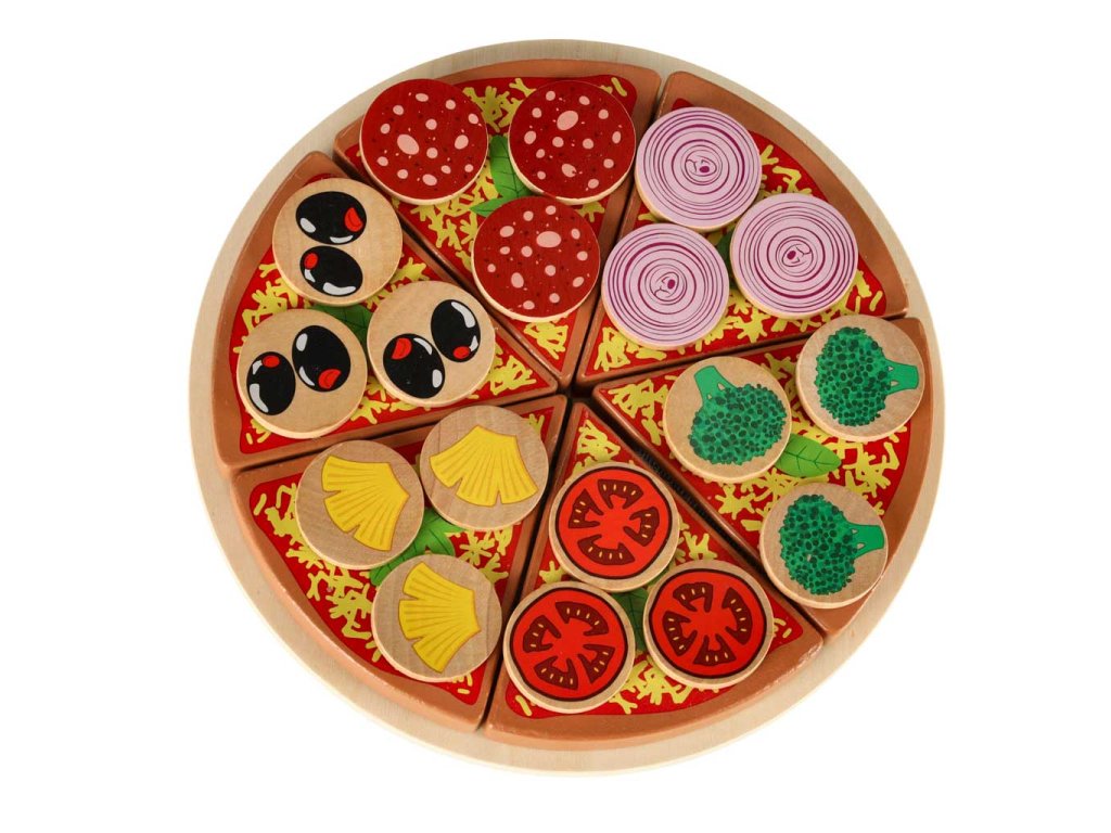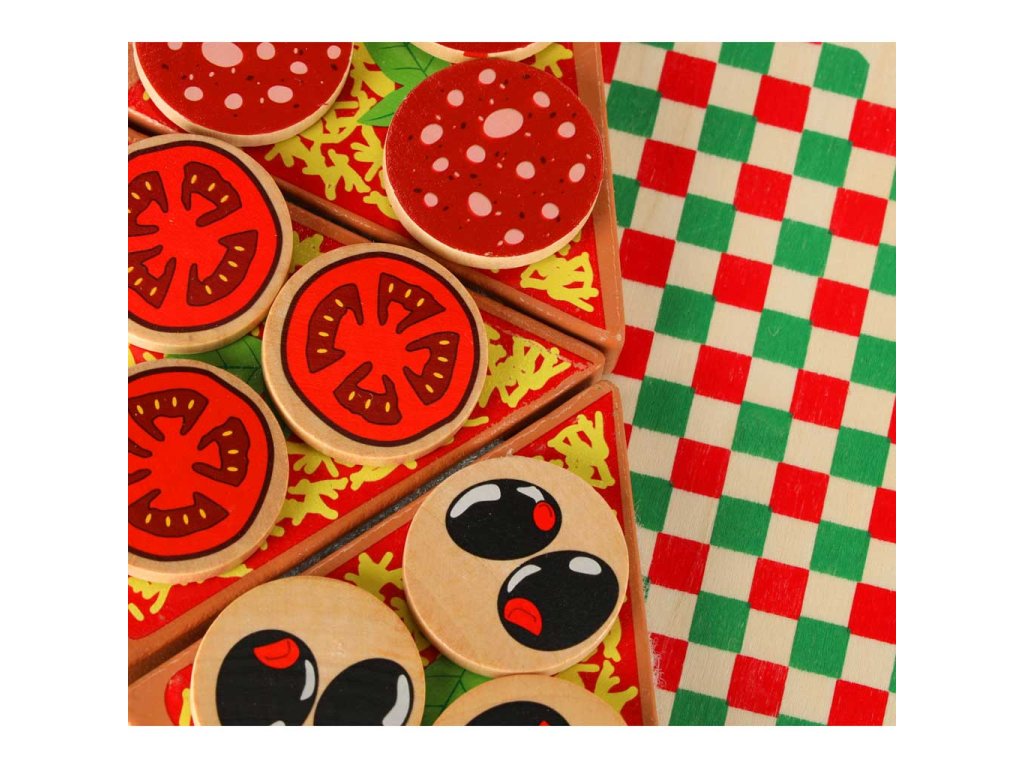 Sada se skládá ze šesti kusů pizzy, na které si děti mohou dle libosti uspořádat ingredience, jako jsou olivy, cibule, salám, brokolice, ananas a rajčata. Všechny kusy jsou vyrobeny z hladce broušeného dřeva a natřeny bezpečnými barvami.