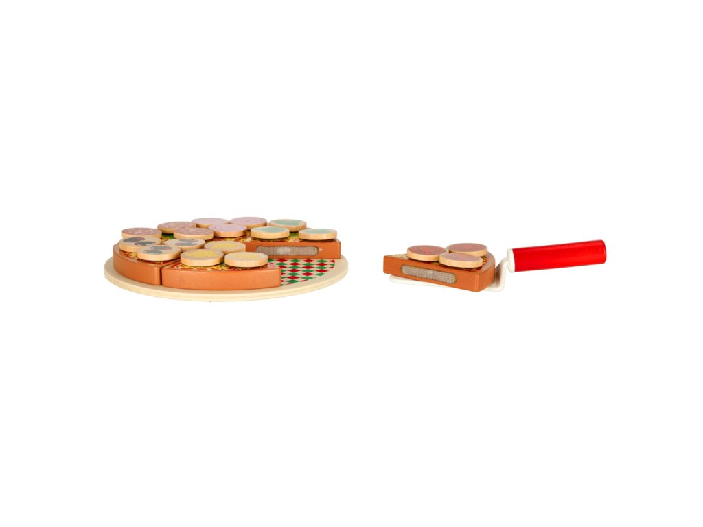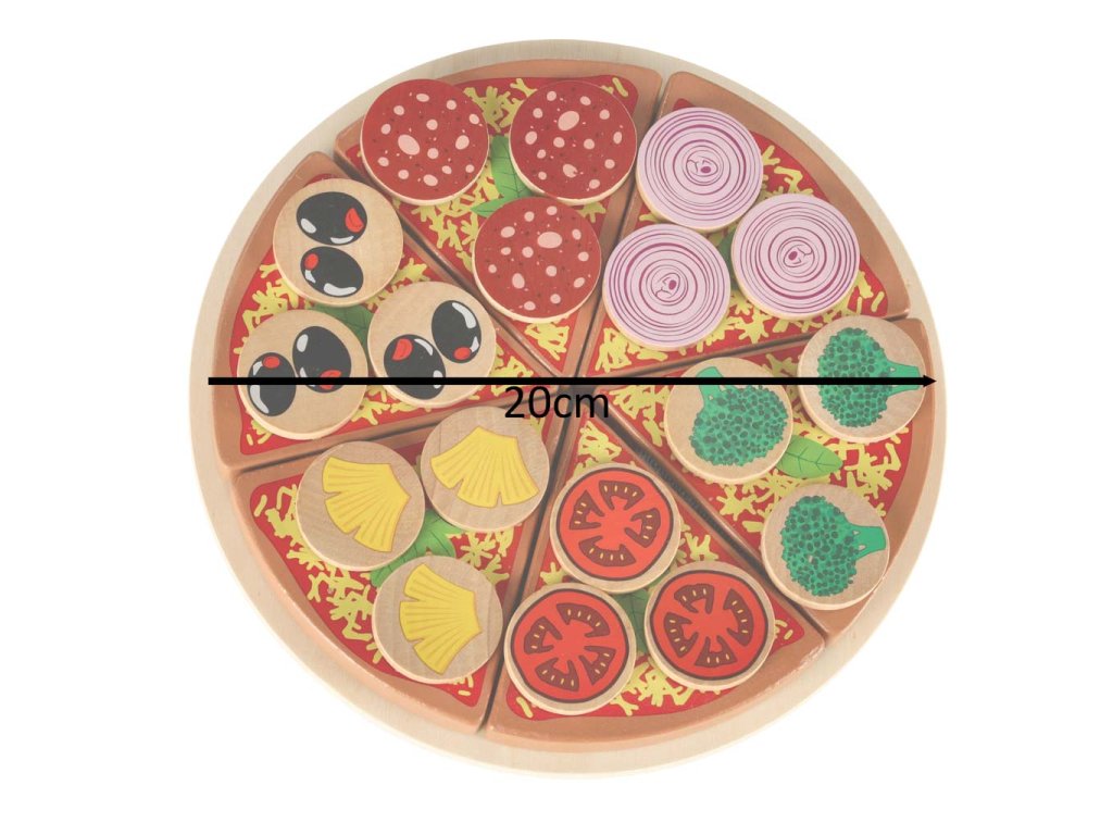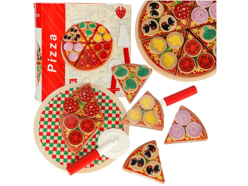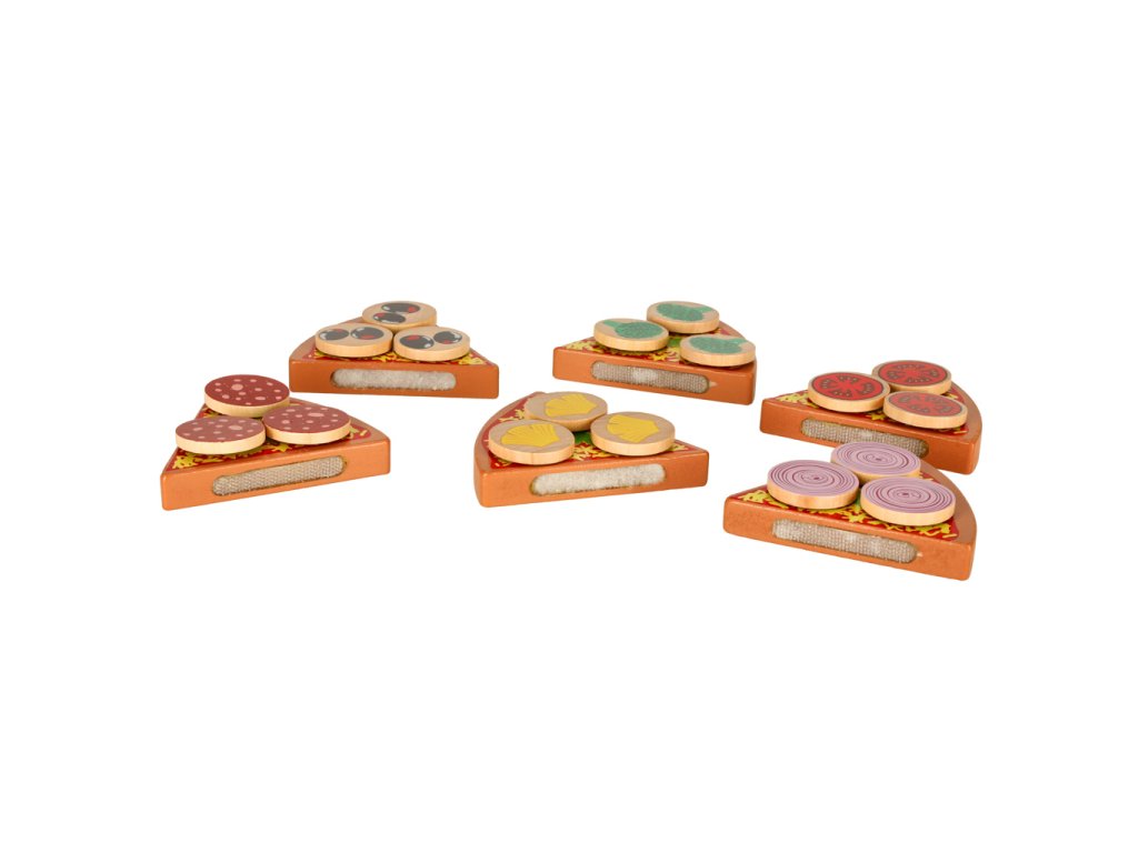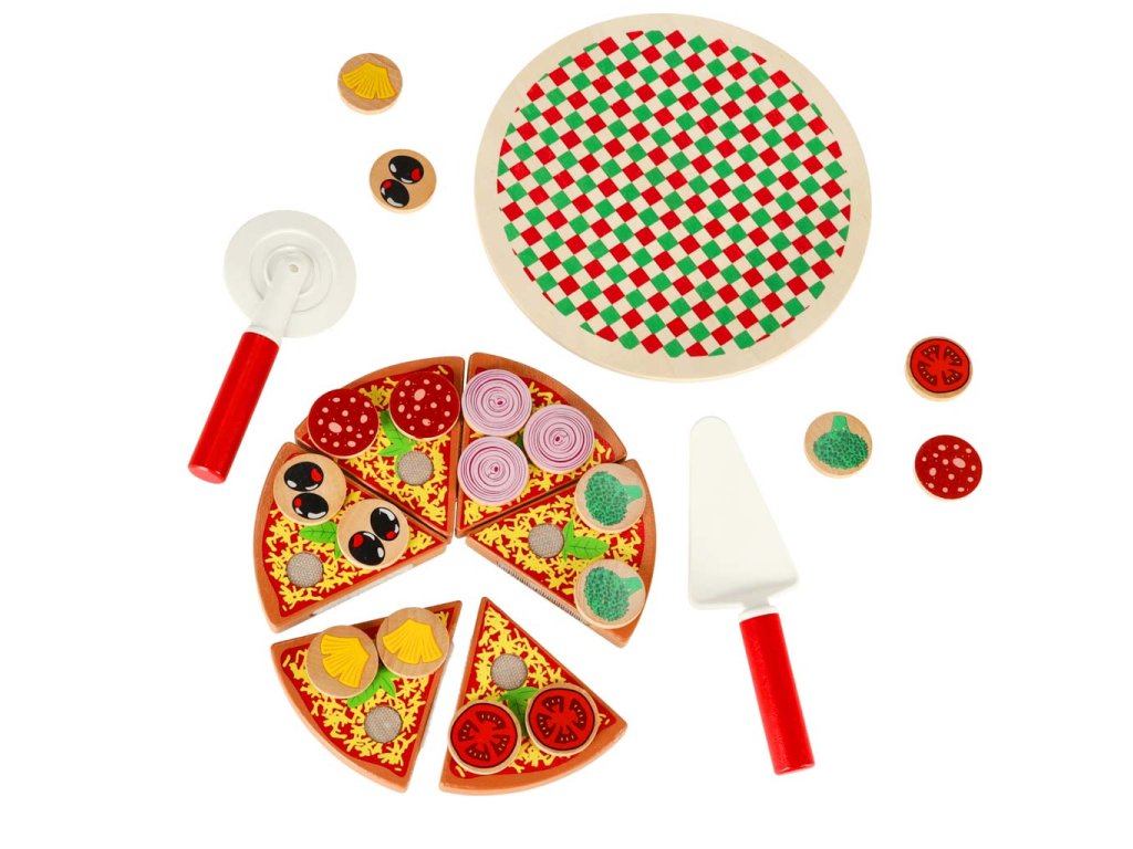 Sada se skládá ze šesti kusů pizzy, na které si děti mohou dle libosti uspořádat ingredience, jako jsou olivy, cibule, salám, brokolice, ananas a rajčata. Všechny kusy jsou vyrobeny z hladce broušeného dřeva a natřeny bezpečnými barvami.