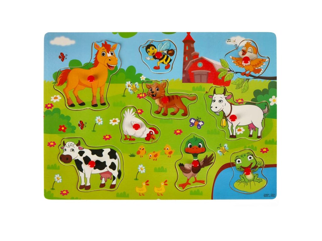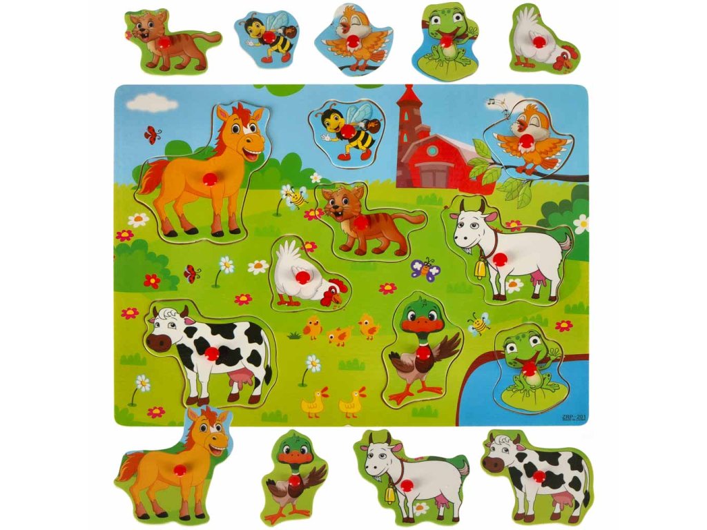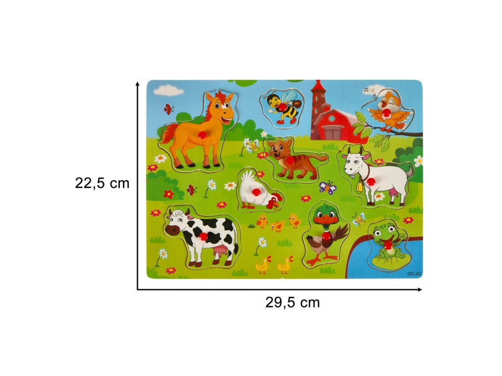 Dřevěná skládačka s úchyty, která pomáhá dítěti naučit se nové dovednosti.