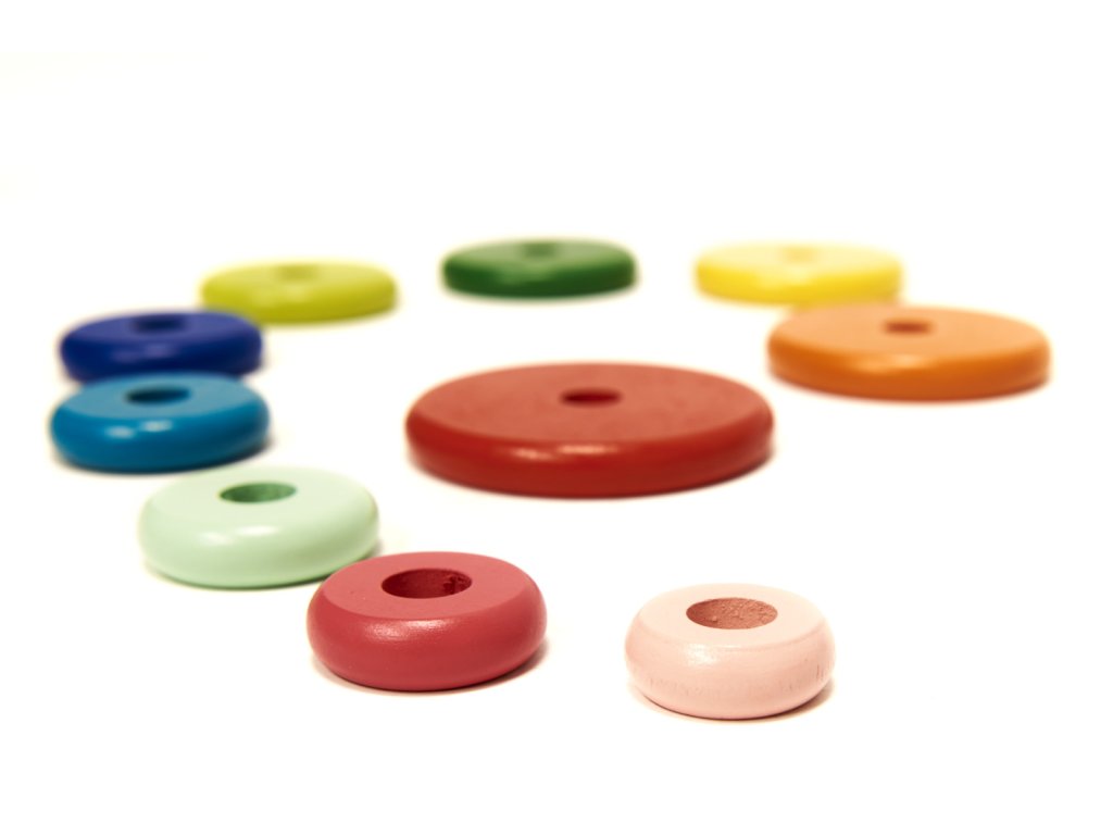 Když dáváte hračku svému dítěti, chcete se ujistit, že je bezpečná. Chápeme to! Proto byl každý dílek sady pečlivě obroušen, aby se žádná tříska nepronikla do malé ručičky. K natření disků byla použita bezpečná a netoxická barva. Prvky jsou příliš velké na to, aby se jimi dítě mohlo udusit.