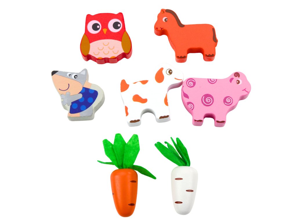 Vlastnosti: třídič, zvonky, pohyblivá kolečka, figurky zvířat, magnetičtí červi